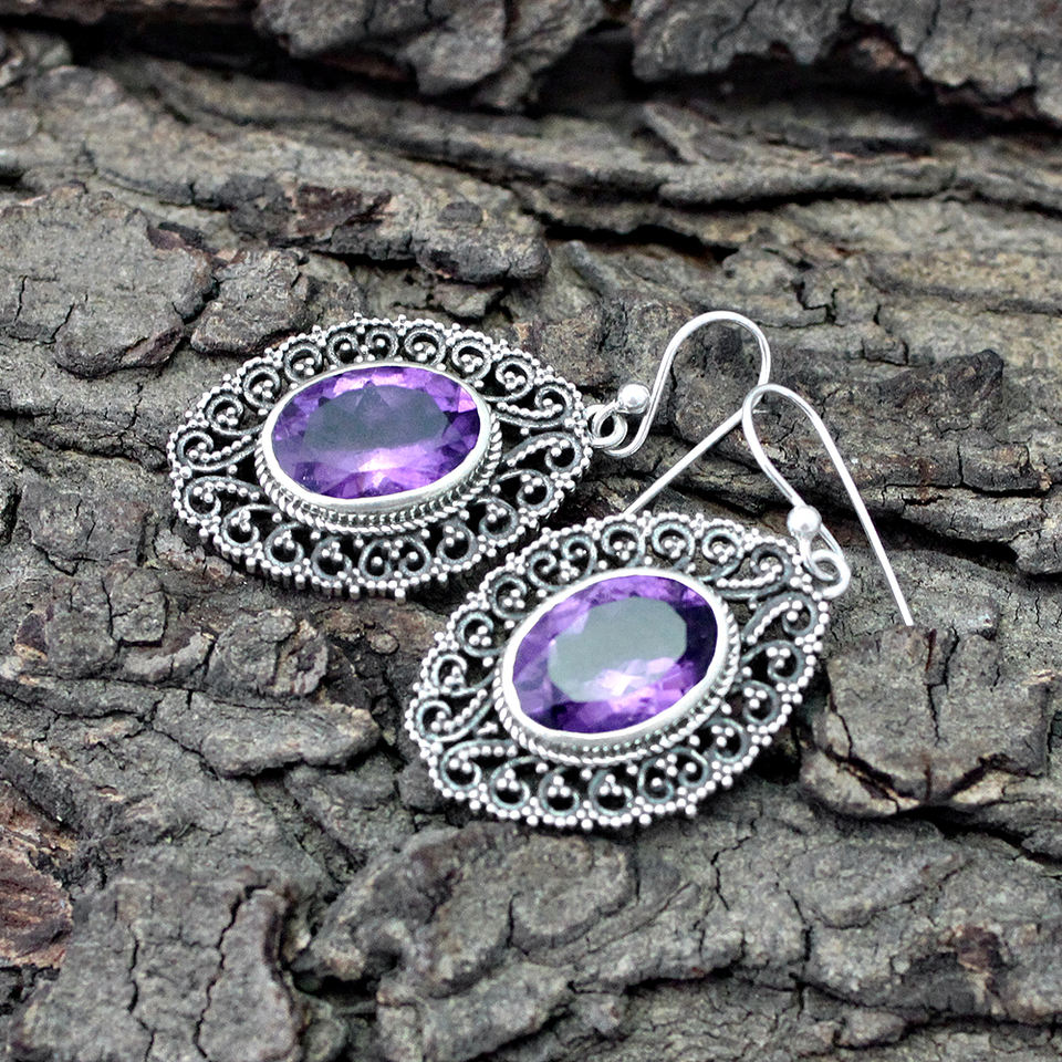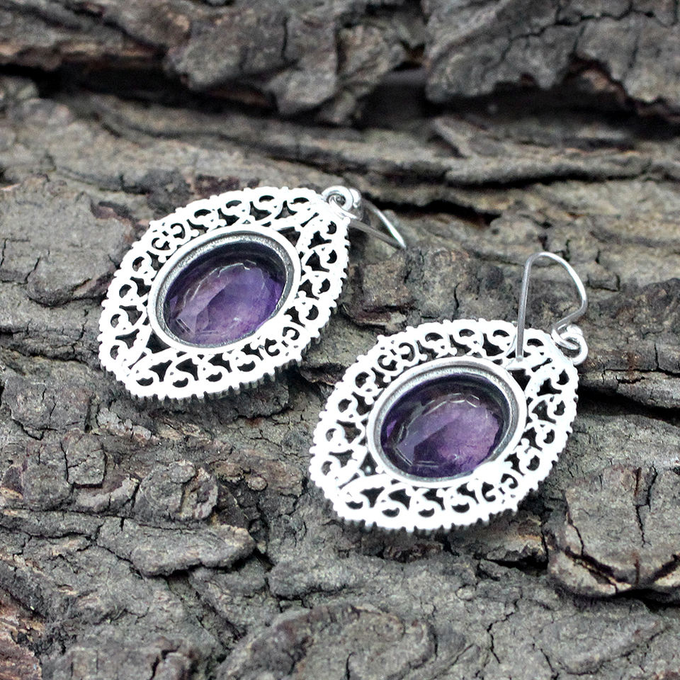 ต่างหูพลอยอเมทิสต์สีเงินสเตอร์ลิงแบบ925ต่างหูทำมือต่างหูเงินอินเดียสำหรับผู้หญิงและเด็กผู้หญิง