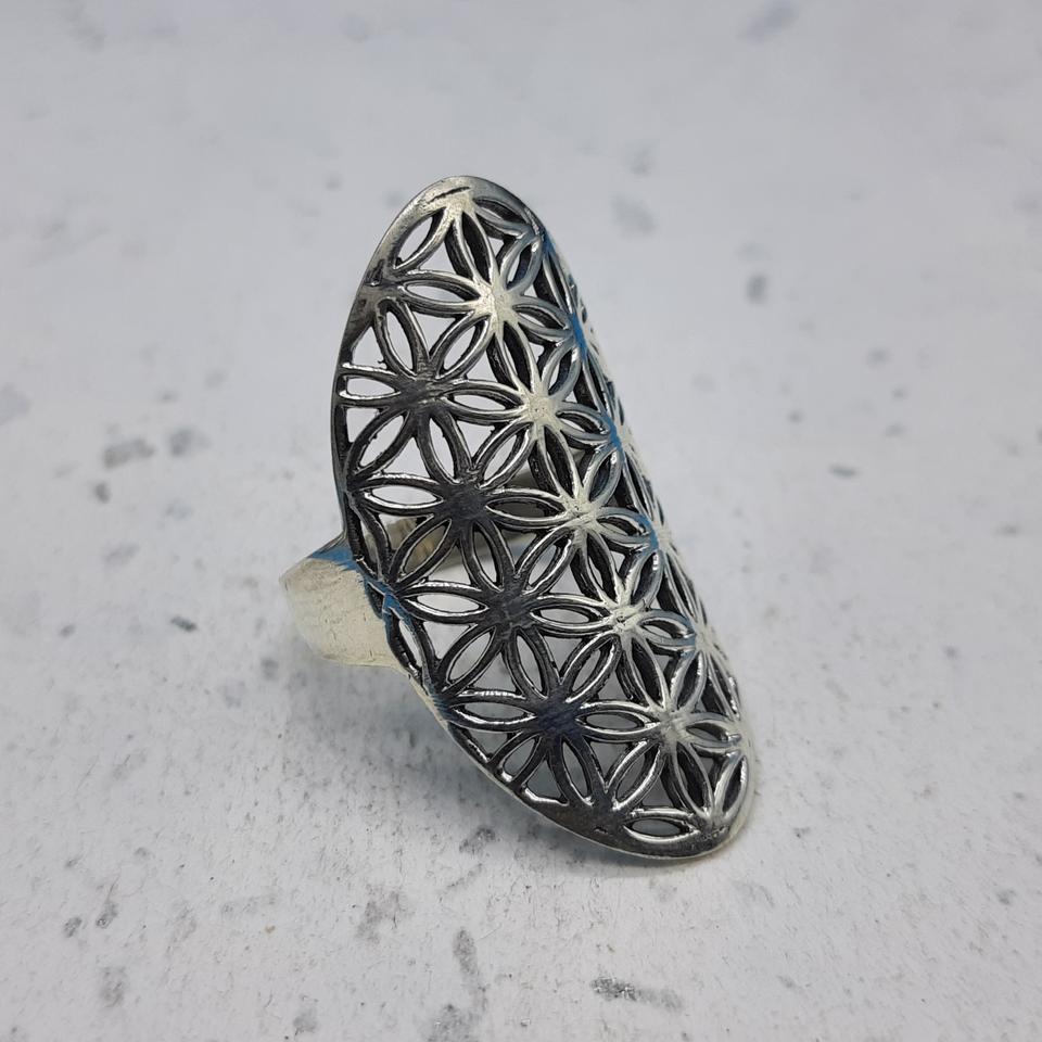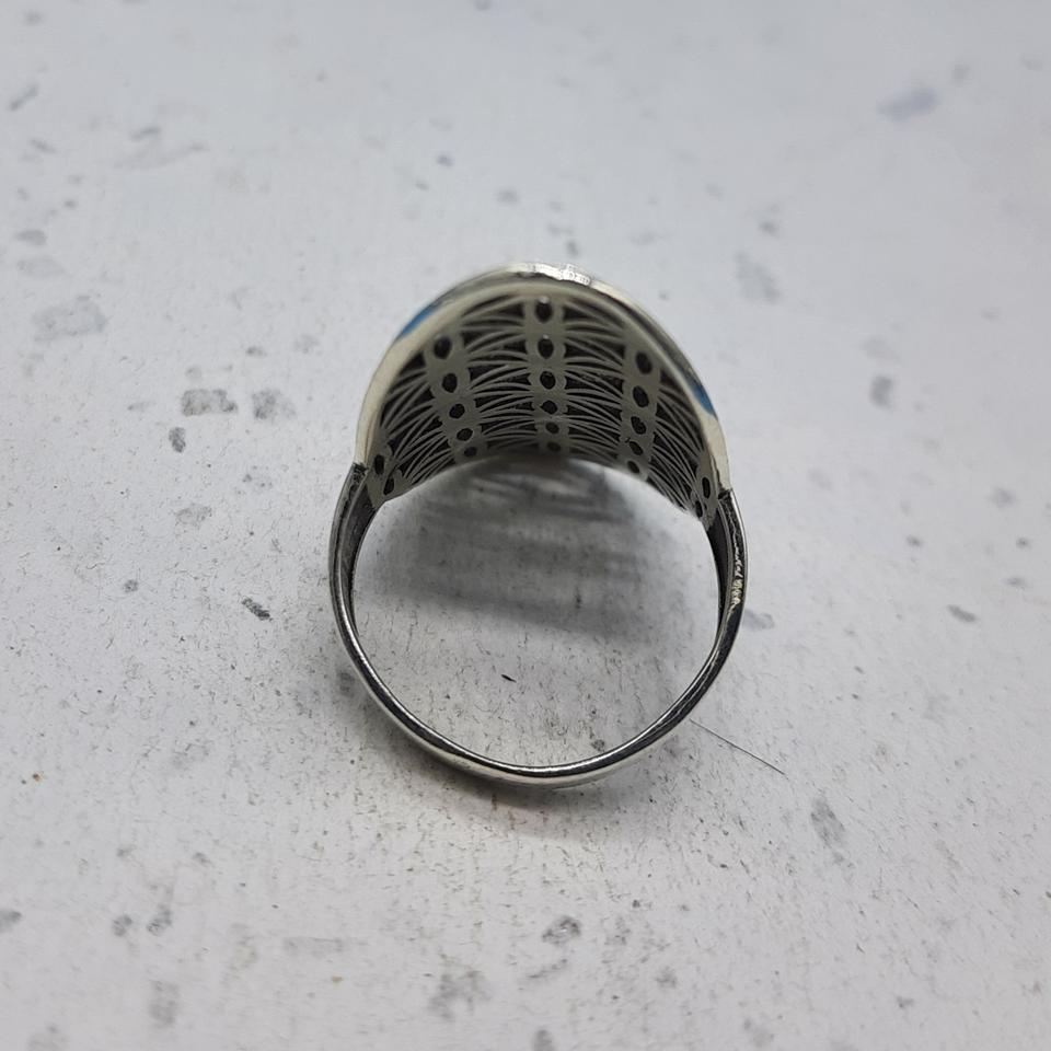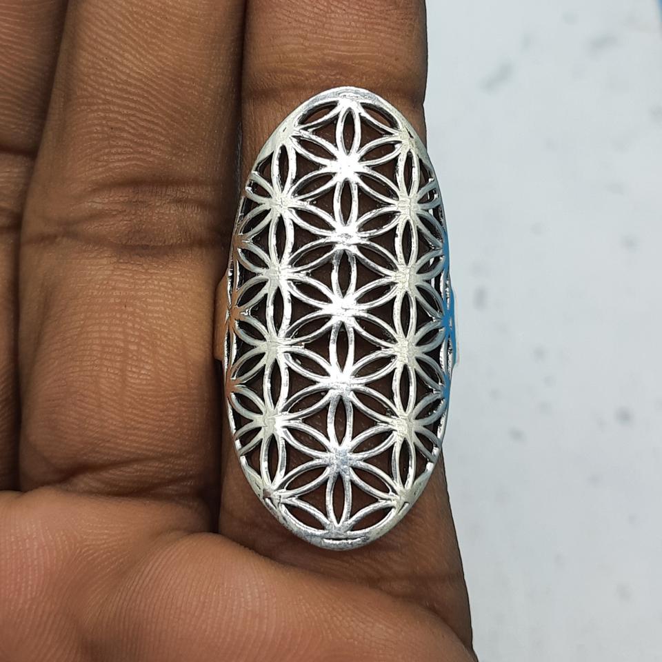 แหวน925สไตล์โบฮีเมียนสีเงินสเตอร์ลิงพร้อมดีไซน์ดอกไม้หินธรรมชาติทรงไข่ตัดสำหรับผลิตในอินเดีย