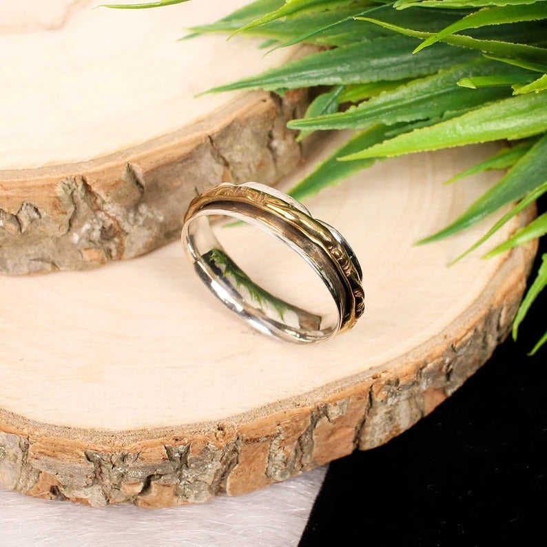 แหวนสองโทนสีเงินสไตล์โบฮีเมียนแบบ925รูปเรขาคณิตประดับเพชรโรเดียมทรงไข่และตั้งอยู่ในแพลทินัม