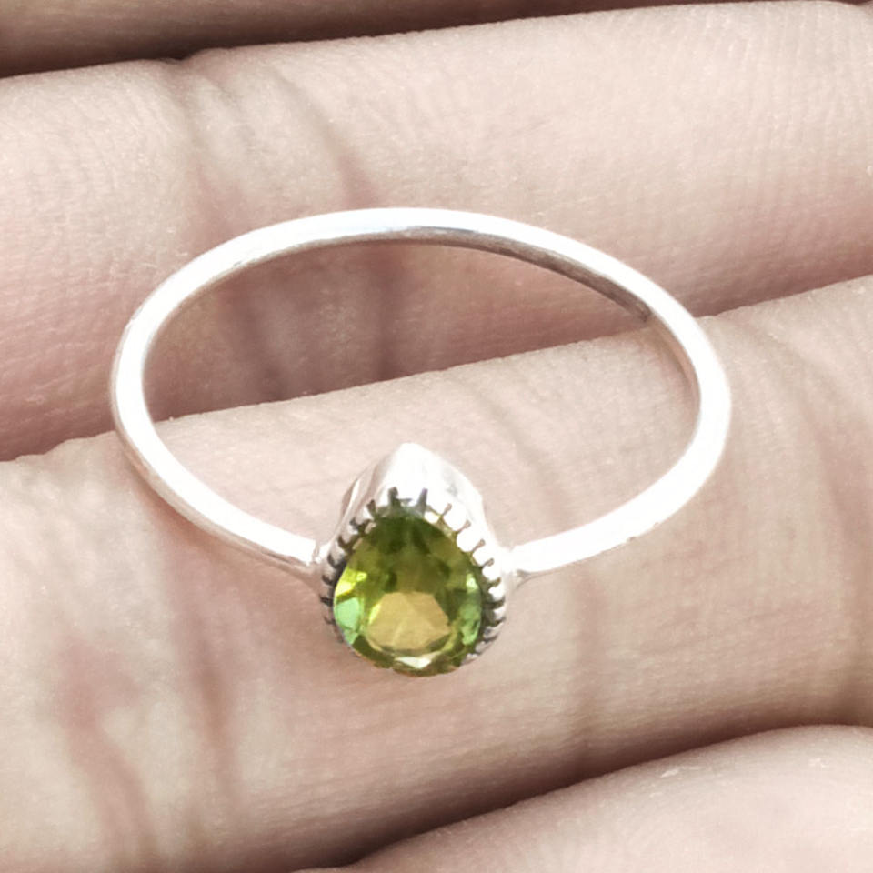 แหวนเพอริดอทเจียระไนเงินสเตอร์ลิงทำด้วยมือ925ตั้งขอบอย่างดีของขวัญแต่งงานสำหรับผู้หญิงและเด็กผู้หญิงอินเดีย