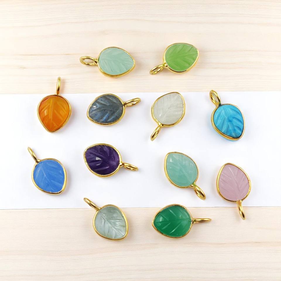 10mm Gemstone Leaf Carving Pendant Handmade Jewelry For Women