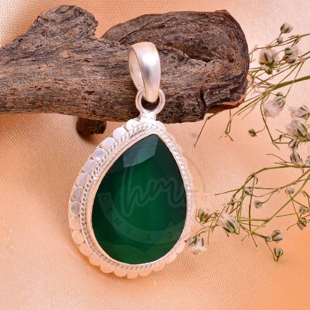 จี้เงินแท้ 925 คุณภาพสูง ดีไซน์คริสเตียน รูปทรงลูกแพร์ พลอยออนิกซ์สีเขียวเจียระไน สำหรับผู้หญิง ขายส่ง