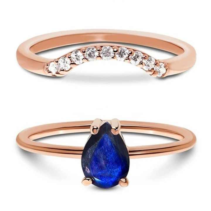 ชุดเครื่องประดับงานแต่งงานบลูแซฟไฟร์:ชุดแหวนชุบทองโรสโกลด์