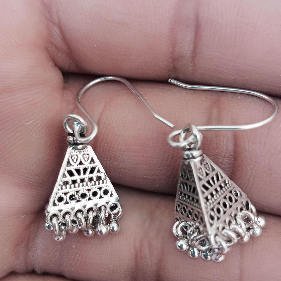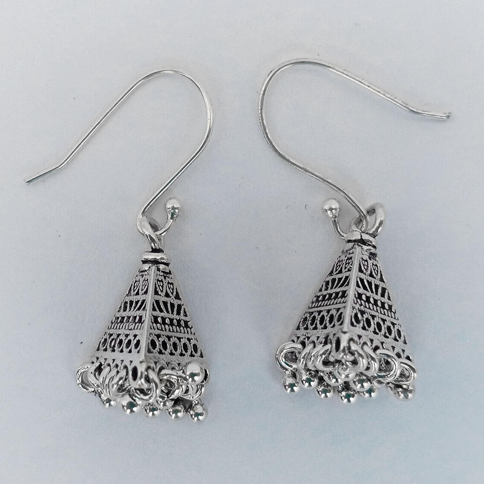 ต่างหูห้อย Jhumki สีเงินสเตอร์ลิง925น่ารักทำด้วยมือเครื่องประดับสำหรับงานเลี้ยงหมั้นงานแต่งงานสำหรับผู้หญิงของขวัญคริสเตียน