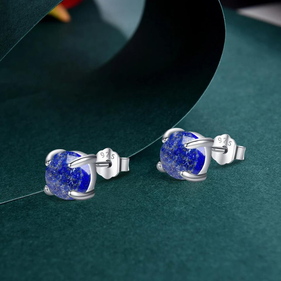 ต่างหู925สำหรับผู้หญิงทำจากเงินแท้ Lapis Lazuli แบบห้อยอัญมณีสีฟ้า