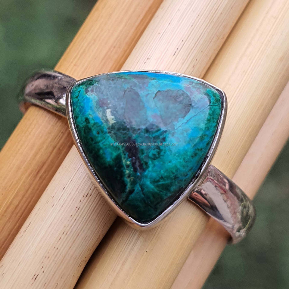 ชื่อผลิตภัณฑ์:Chrysocolla ธรรมชาติ925แหวนเงินสเตอริงสำหรับผู้ชายและผู้หญิง