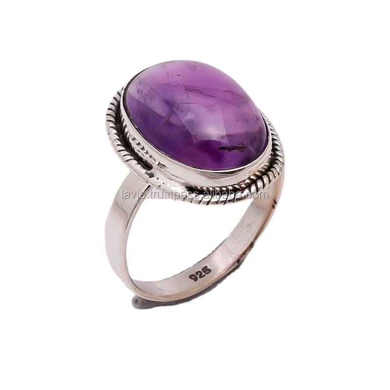 แหวนพลอยอเมทิสต์ธรรมชาติสีเงินสเตอร์ลิงสำหรับ925สำหรับงานแต่งงานและงานเลี้ยงอัญมณีเครื่องประดับจากผู้ผลิตที่เชื่อถือได้ผู้ส่งออก