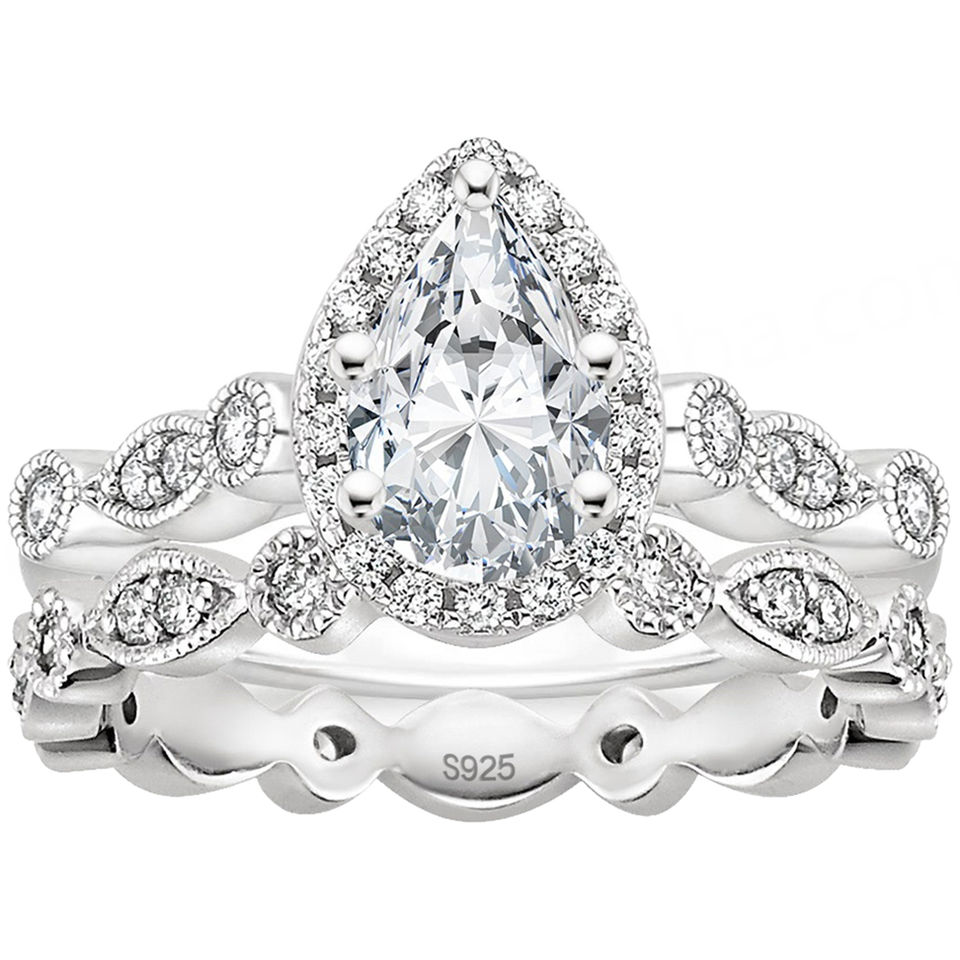 แหวนหมั้นเพชรทรงลูกแพร์ประดับเพชรซิคอนชุบโรเดียมเงินแท้ 925 สำหรับงานแต่งงานและงานเลี้ยง (ขายส่ง)