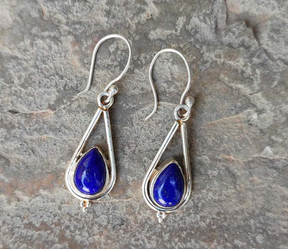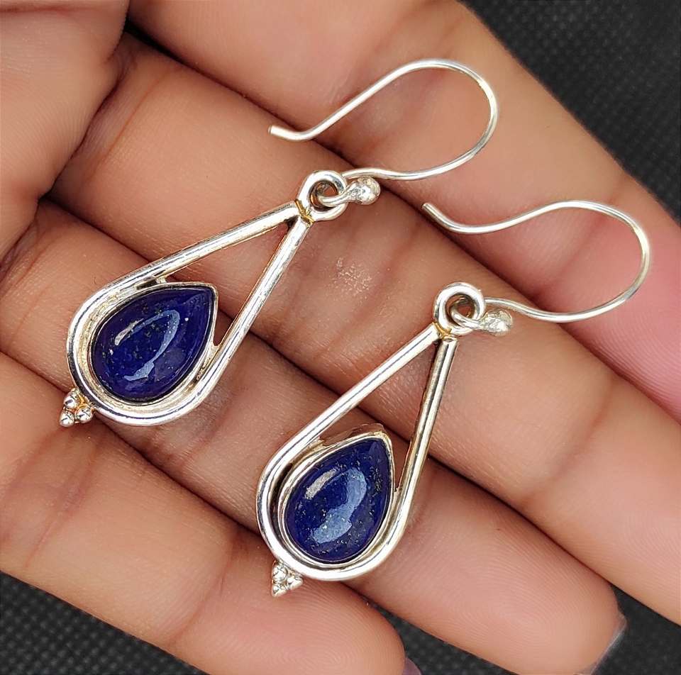 ต่างหู925รูปลูกแพร์เงินสเตอร์ลิงแบบห้อยดีไซน์ใหม่ประดับเพชรและไข่มุกอัญมณี Lapis Lazuli ของขวัญงานปาร์ตี้ที่ทันสมัย