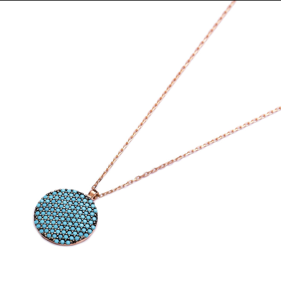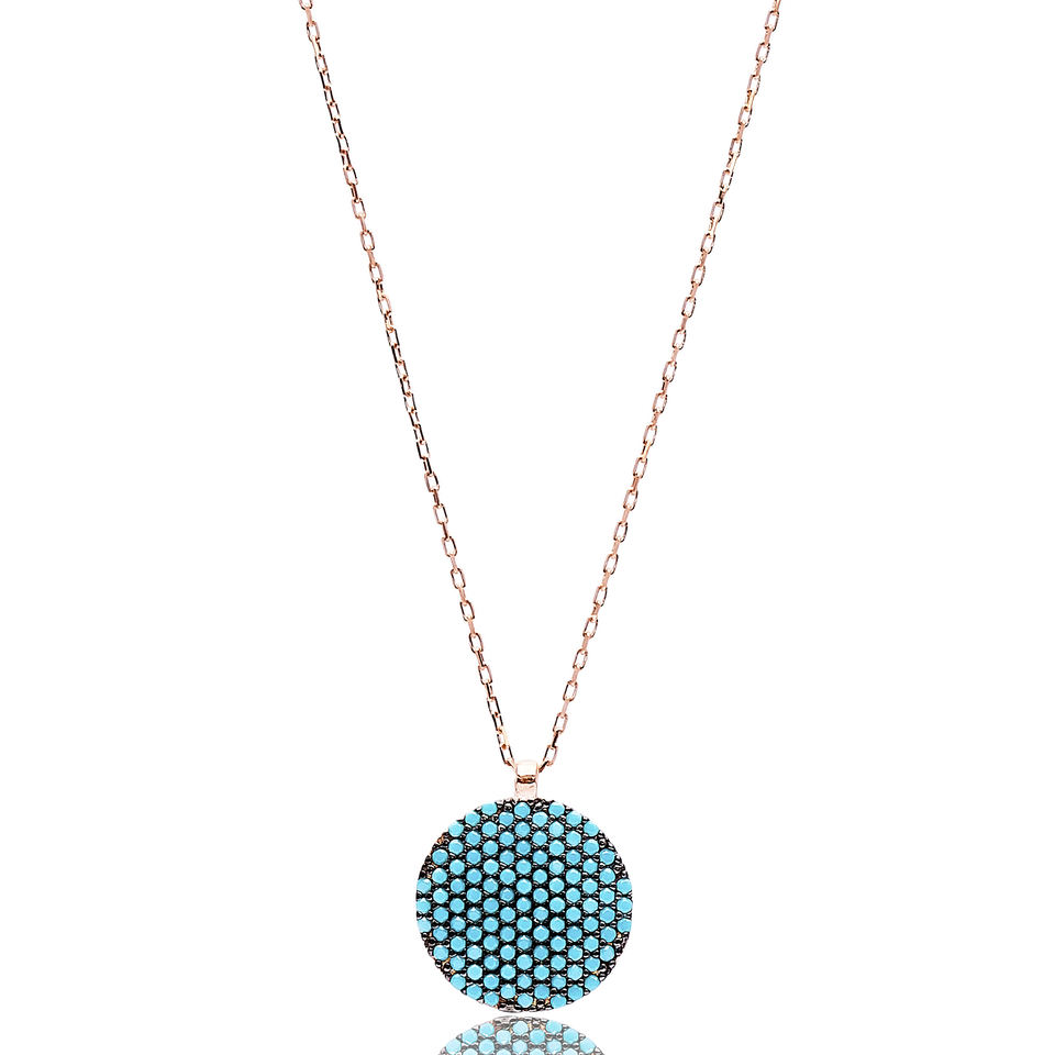 ขายส่ง925เงินสเตอร์ลิงจี้สีฟ้าครามรอบสร้อยคอกุหลาบทองเครื่องประดับแฟชั่น