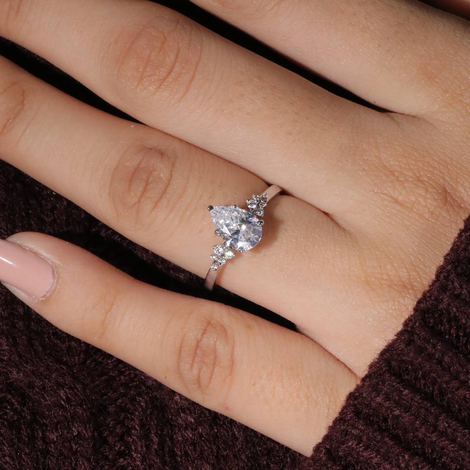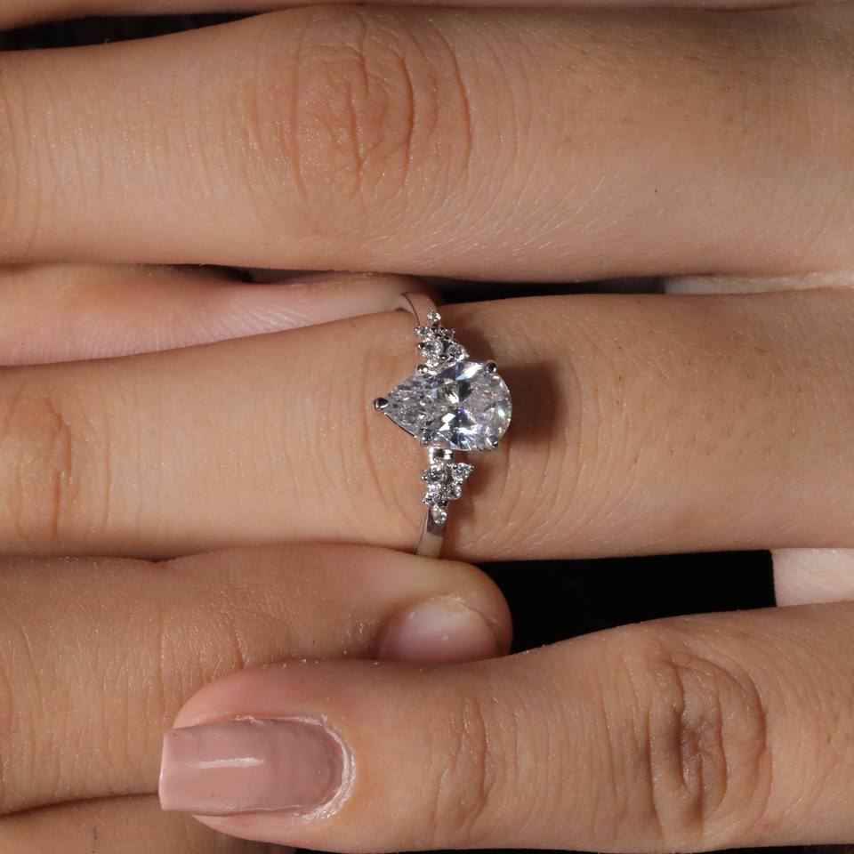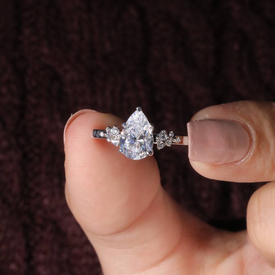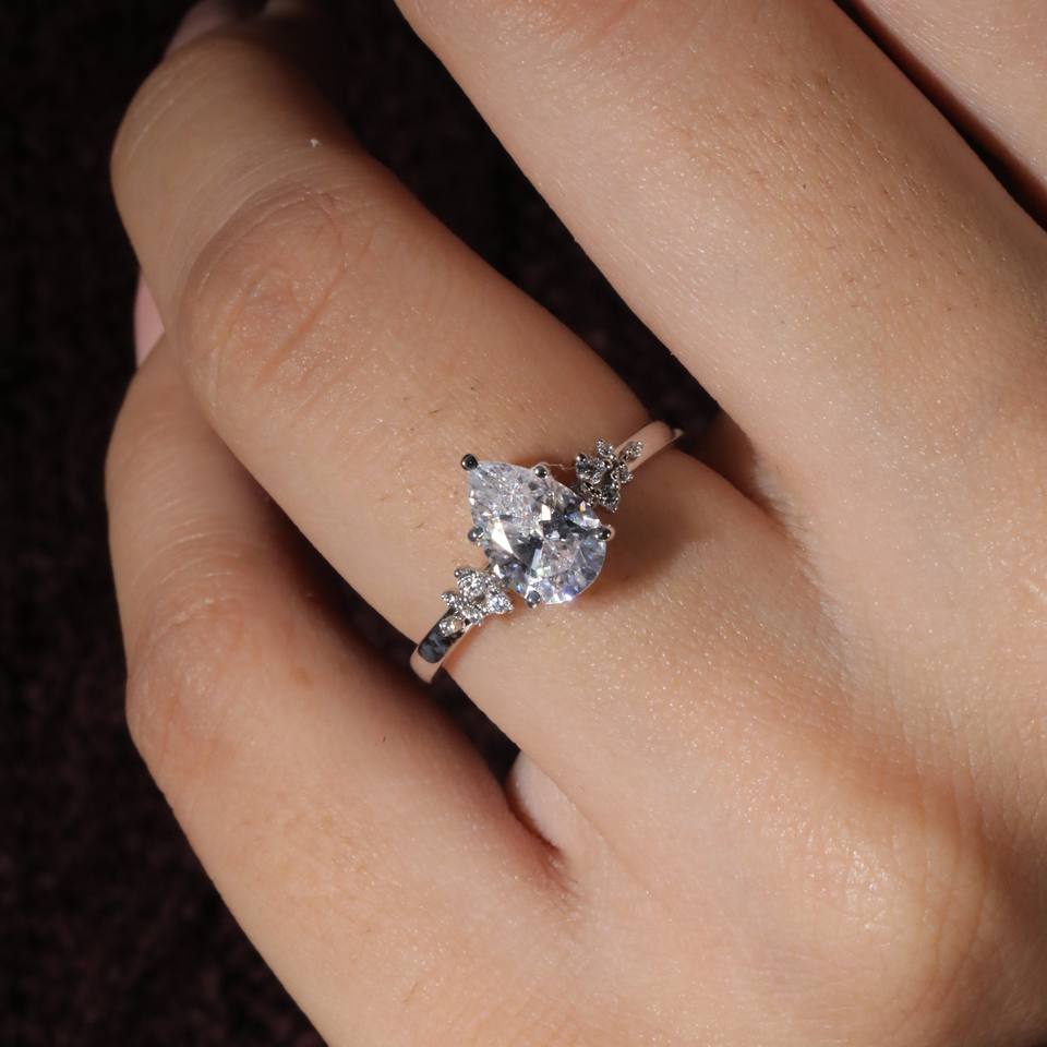 แหวนเงินแท้ 925 ขายส่ง แหวนหมั้นเพชรโมอิสซาไนต์ทรงลูกแพร์ 1.27 กะรัต แหวนแต่งงาน ดีไซน์ทันสมัย แหวนเครื่องประดับผู้หญิง