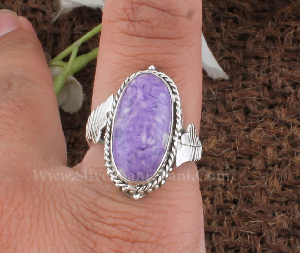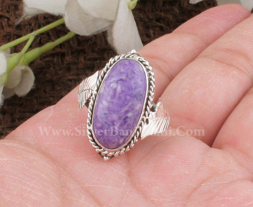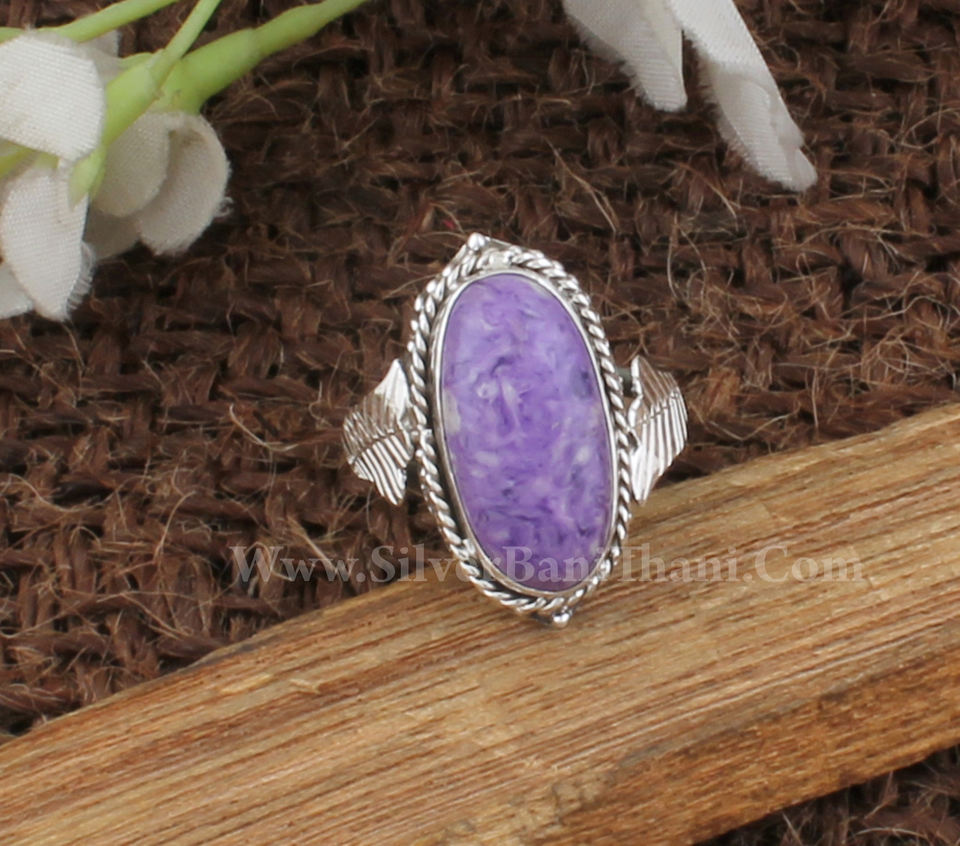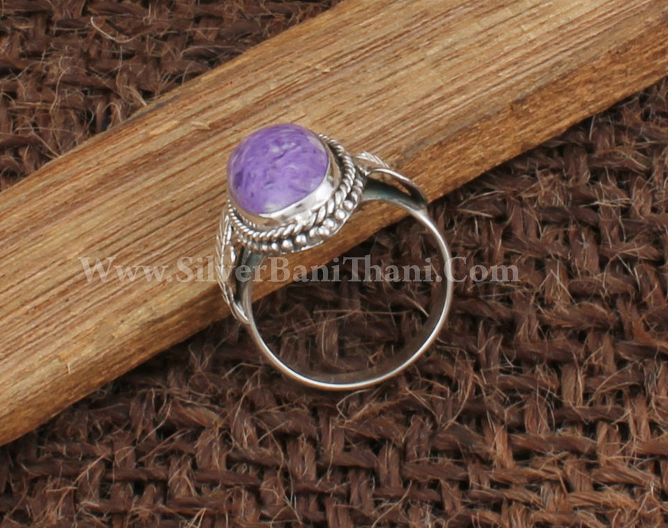 แหวนเงินสเตอริงทำด้วยมือสำหรับผู้หญิงขายส่ง925อัญมณีหินสีม่วงสวยตัด