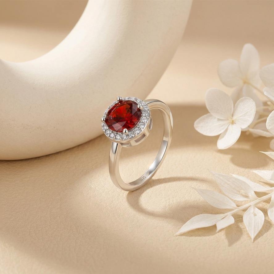 แหวนเงินแท้ 925 ประดับพลอยโกเมนสีแดงทรงกลมและเพชรคิวบิกเซอร์โคเนียทรงรัศมี สำหรับผู้หญิง ของขวัญเครื่องประดับสำหรับงานแต่งงานและงานหมั้น ขายส่ง