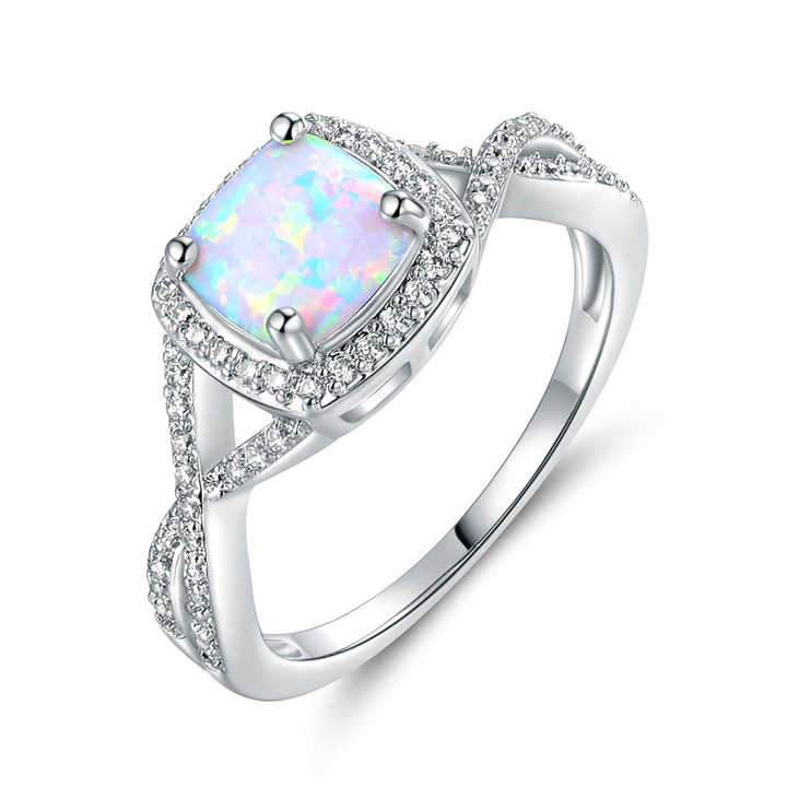 แหวนหมั้นเงินแท้ 925 ชุบโรเดียม ประดับโอปอลไฟสีขาวสังเคราะห์ สำหรับงานแต่งงานและงานเลี้ยง