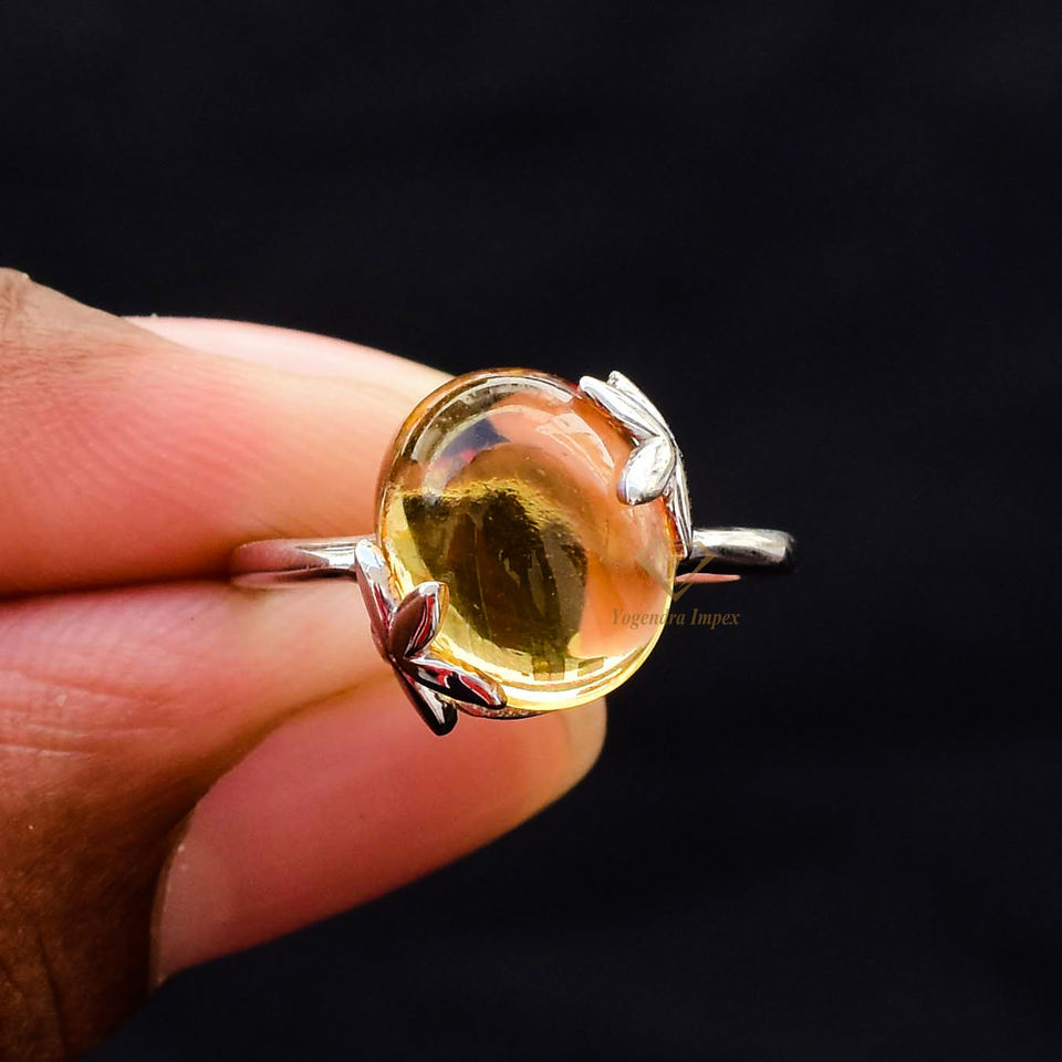ชุดแหวนปาร์ตี้ทันสมัยสีเงินสเตอร์ลิง925อัญมณีสีเหลืองมะนาวธรรมชาติที่สวยงาม