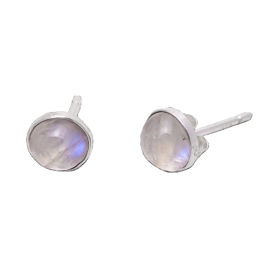 ต่างหูเม็ดกลมสีเงินสเตอร์ลิง925สำหรับสตรีพลอยมูนสโตนสีรุ้งแบบเรียบชุดเครื่องประดับแบบฝาปิด