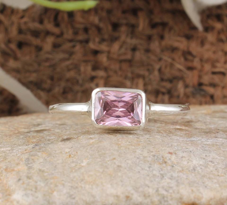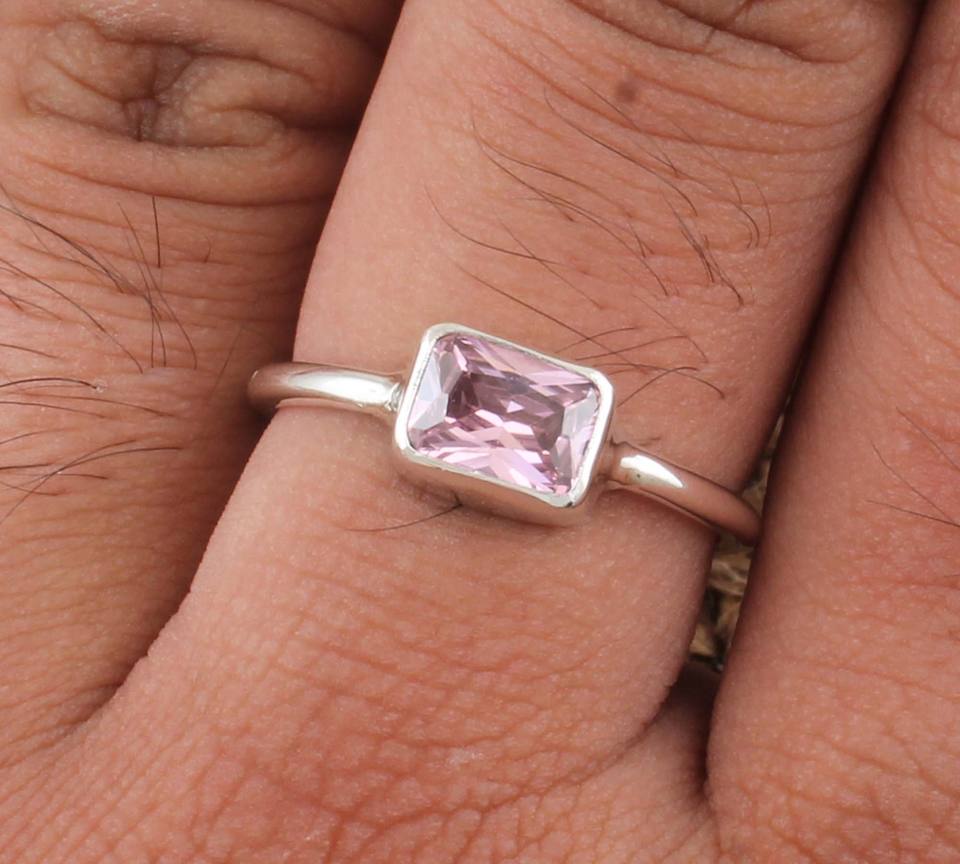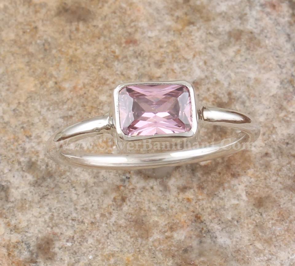 แหวนเงินแท้ 925 ชุบทองคำขาวประดับเพทายสีชมพูทรงคลาสสิค น้ำหนัก 2-3 กรัม สำหรับผู้หญิง รุ่น SJSM-506 เหมาะสำหรับงานแต่งงาน ขายส่งจาก Shree Jaipur Silver