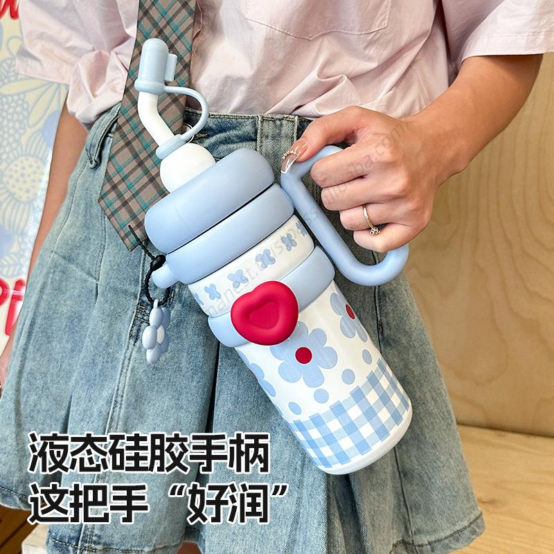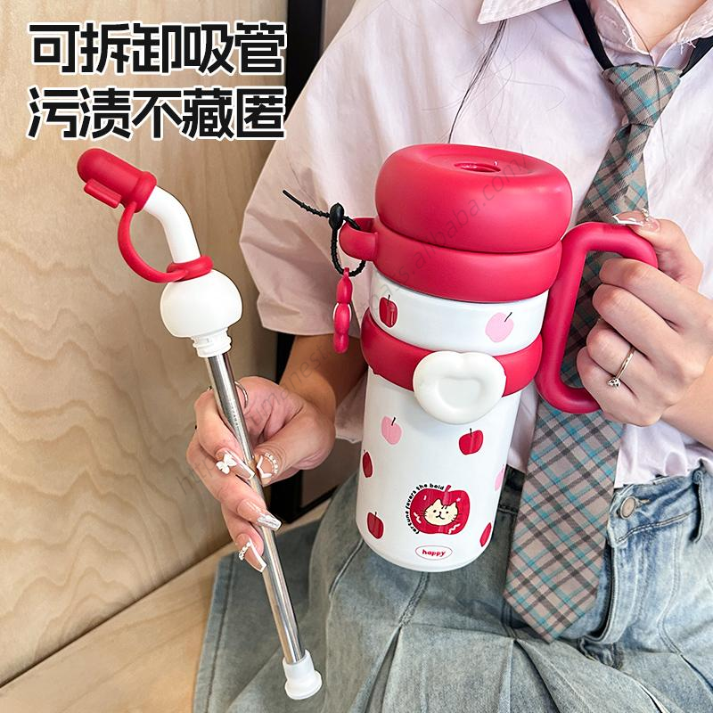แก้วน้ำสแตนเลสเก็บความเย็น ขนาด 930 มล. พร้อมหลอดดูด ดีไซน์น่ารัก เหมาะสำหรับกาแฟเย็น มีหูจับ ขายส่ง
