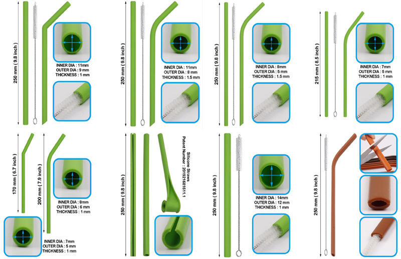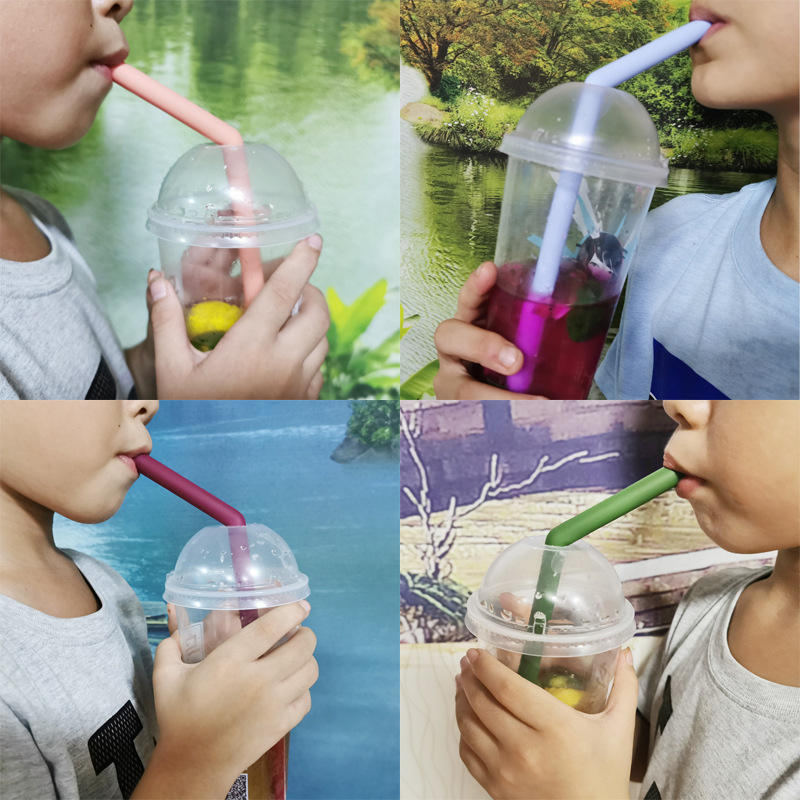 หลอดดูดซิลิโคนแบบโค้งงอ รุ่น A2413 สำหรับขายส่ง แบบหนา สำหรับดื่มชาไข่มุก ใช้ซ้ำได้