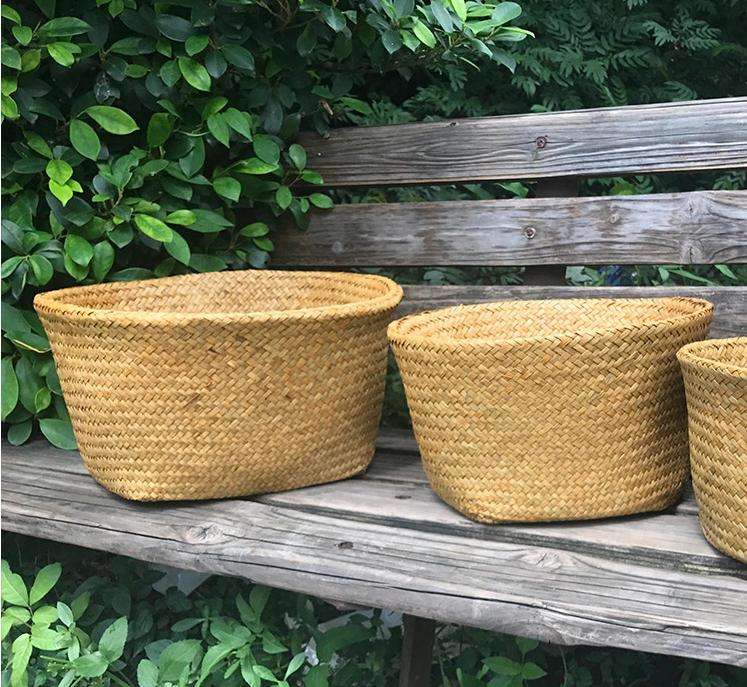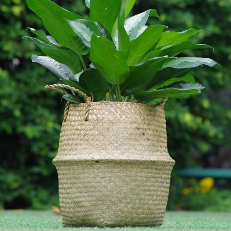 กระถางดอกไม้พับได้อเนกประสงค์แบบพกพา AAA99 ขายส่ง ทำจากฟาง สำหรับเก็บของ งานแฮนด์เมด