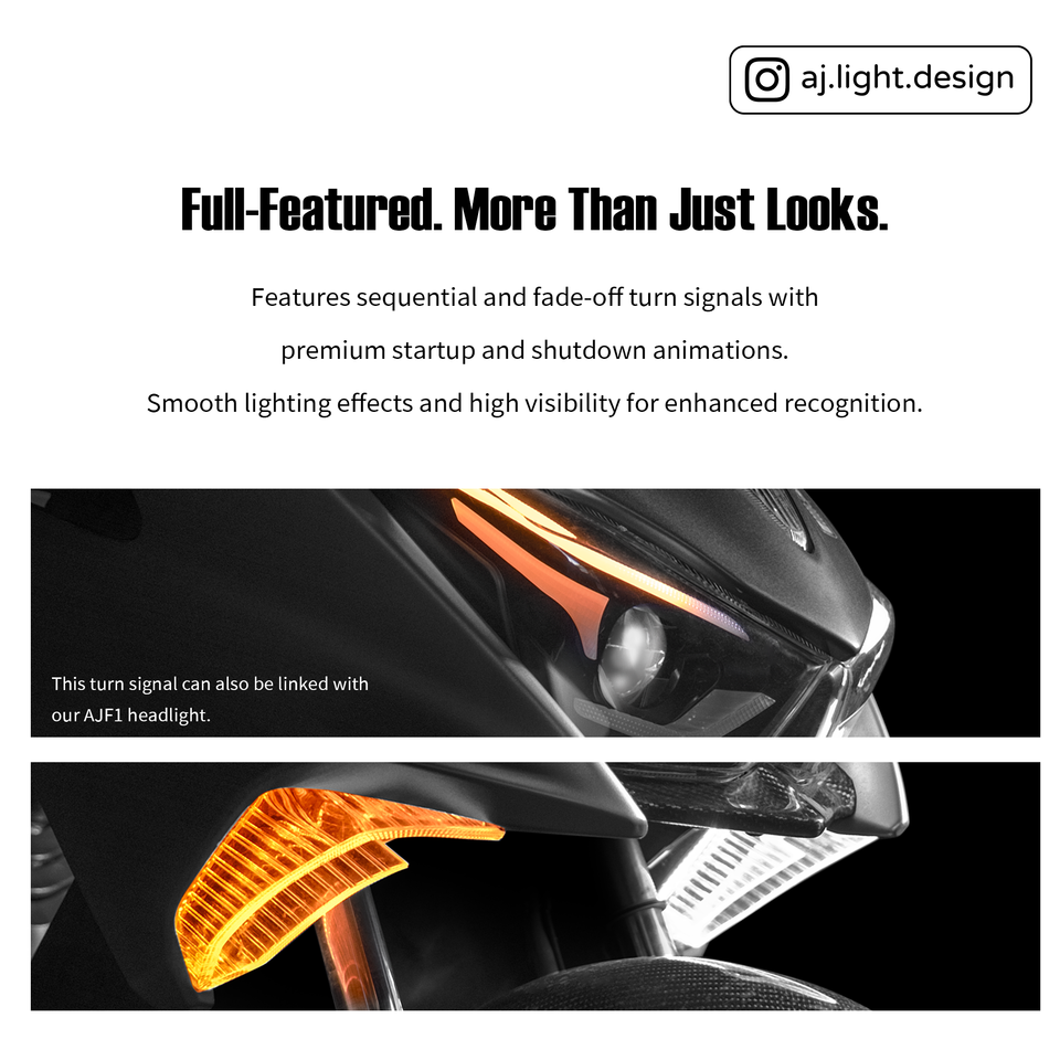 ระบบไฟเลี้ยว LED แบบไหลสองด้าน AJ LIGHT DESIGN รุ่น AJF1-TUL สำหรับมอเตอร์ไซค์ แบบขายส่ง สำหรับการดัดแปลง/อัพเกรด รับประกัน 12 เดือน