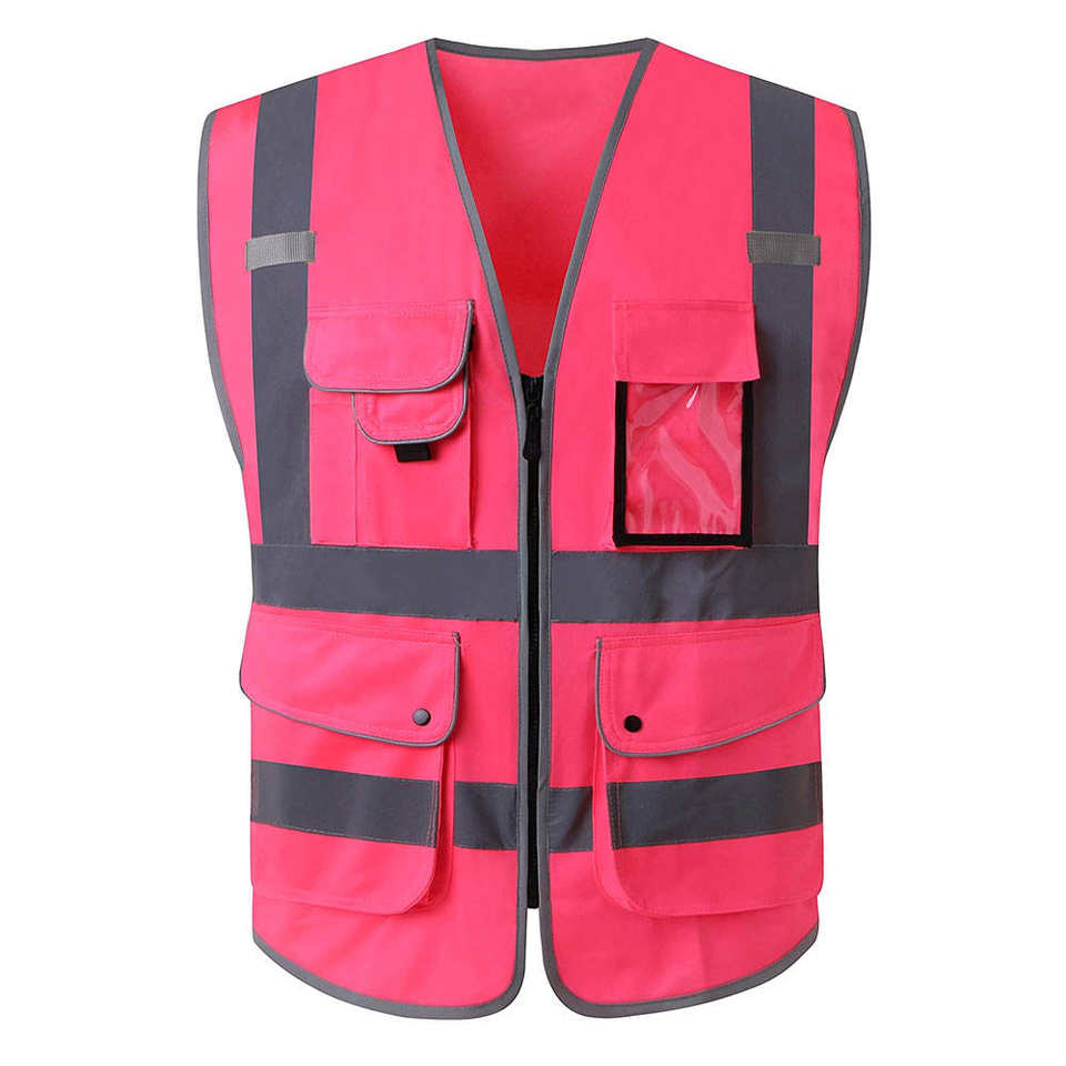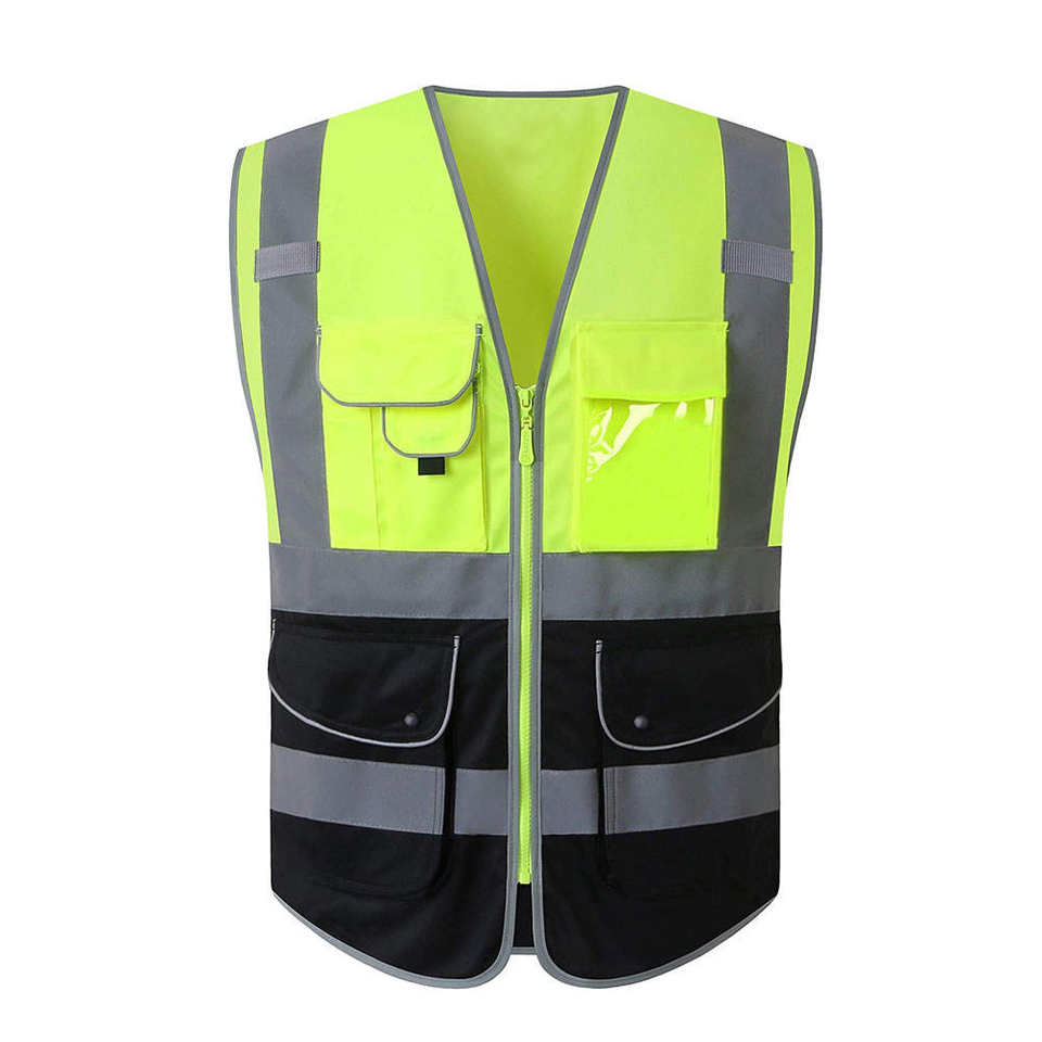 เสื้อกั๊กนิรภัยสะท้อนแสงมองเห็นได้ชัดเจน20471มาตรฐาน Ansi Class 2 EN ISO พร้อมกระเป๋าแบรนด์ที่กำหนดเอง