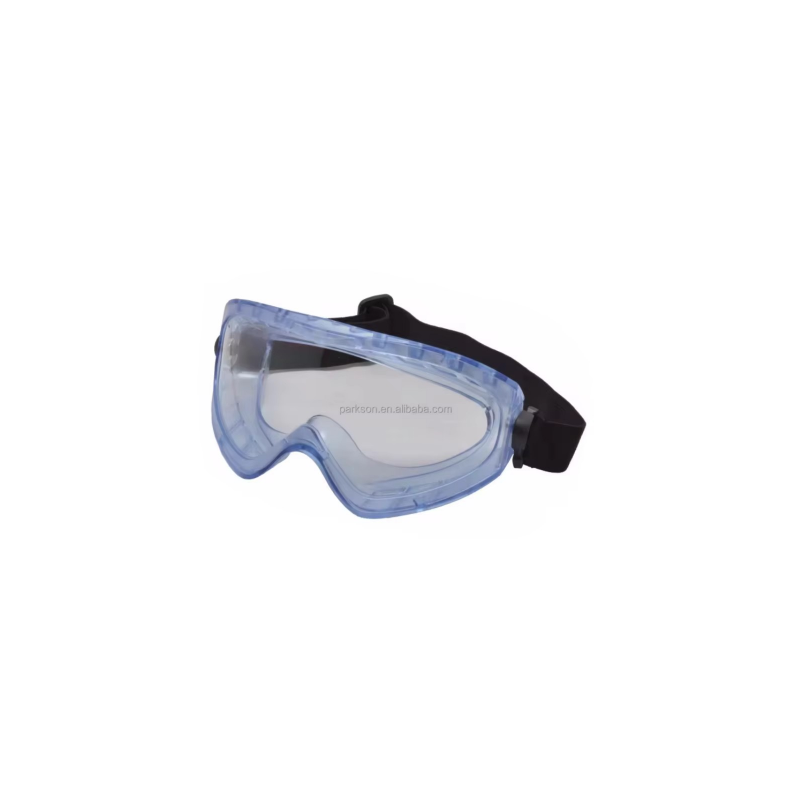 แว่นตานิรภัยกันกระแทกมาตรฐาน ANSI Z87.1 ขายส่ง กรอบพีวีซีสีน้ำเงิน น้ำหนักเบา เลนส์กันฝ้าขนาดใหญ่ ป้องกันดวงตา
