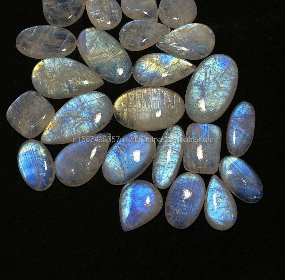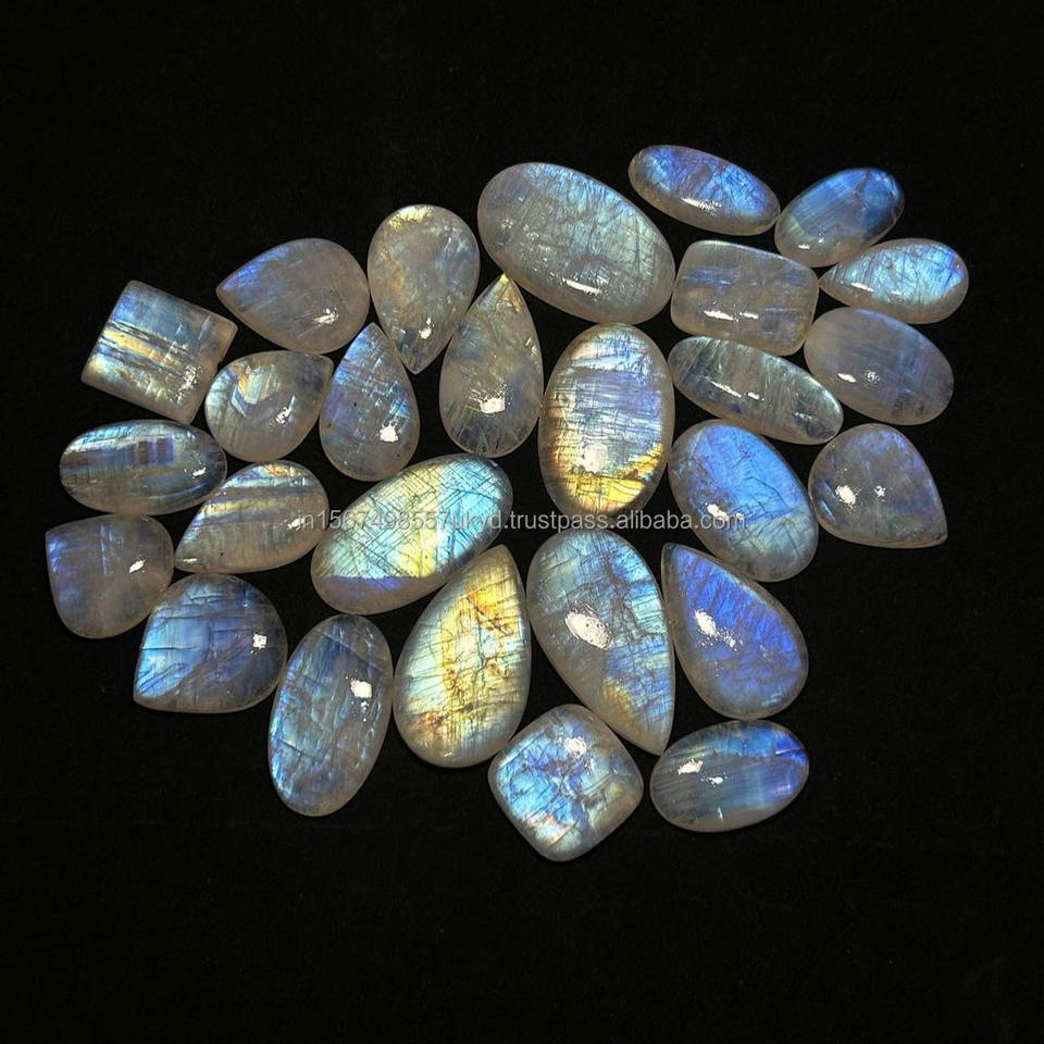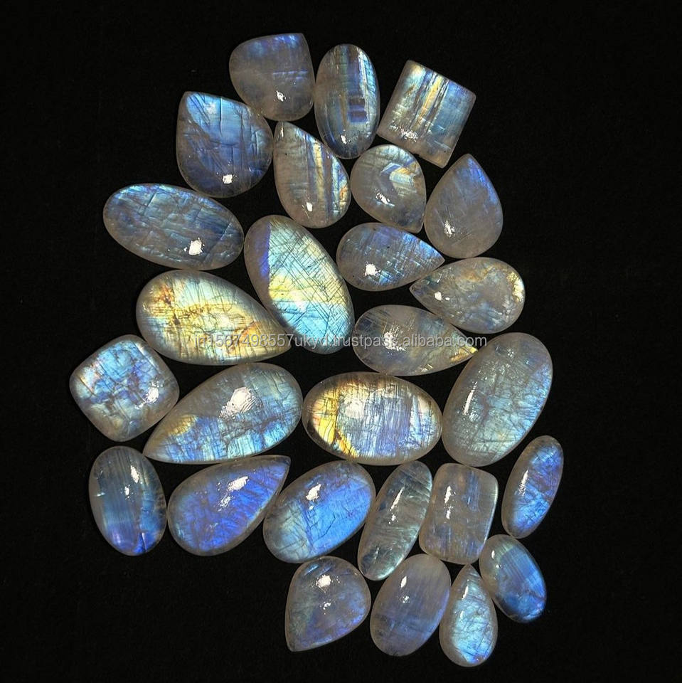 พลอยอาฮันอัญมณีสีรุ้งธรรมชาติพลอยมูนสโตนทำมืออัญมณีสีฟ้าขนาดผสมราจาสำหรับทำเครื่องประดับ