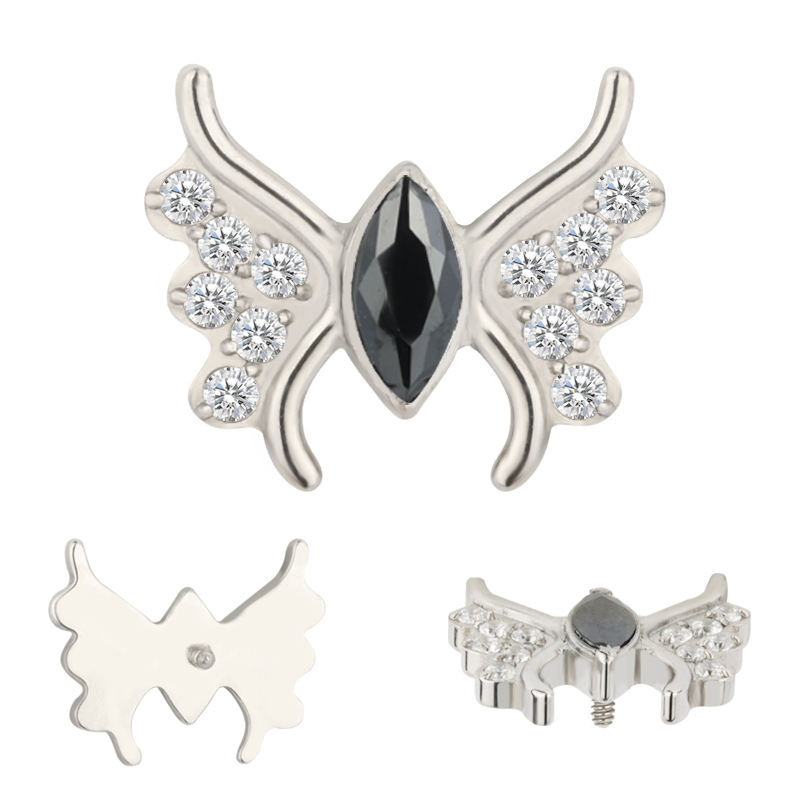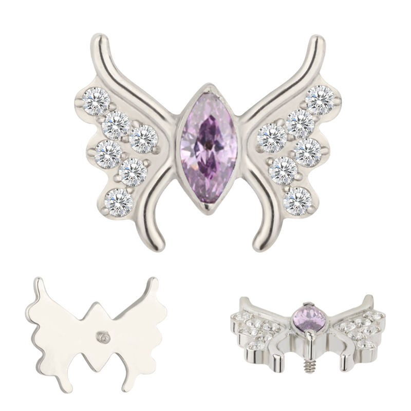 เสื้อเจาะร่างกาย16g พร้อมเพทายสำหรับงานแต่งงานของผู้หญิง F136ไทเทเนียม ASTM ผีเสื้อ labret