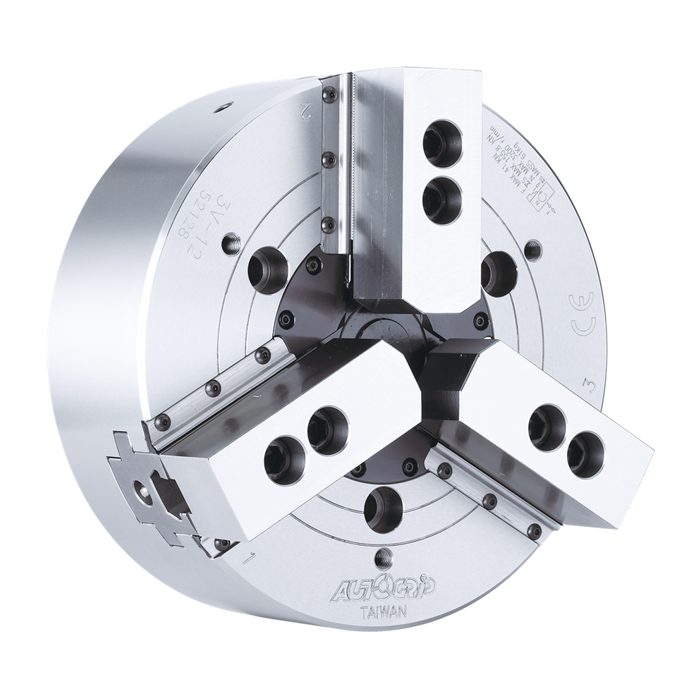 หัวจับไฮดรอลิกเหล็กแบบ 3 ขากรรไกร AUTOGRIP รุ่น 3H-206 ขนาดรูทะลุ 170 มม. เส้นผ่านศูนย์กลางจับสูงสุด ความแม่นยำ 0.01 มม. สำหรับเครื่อง CNC