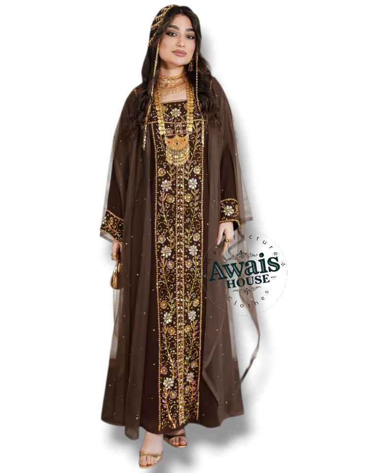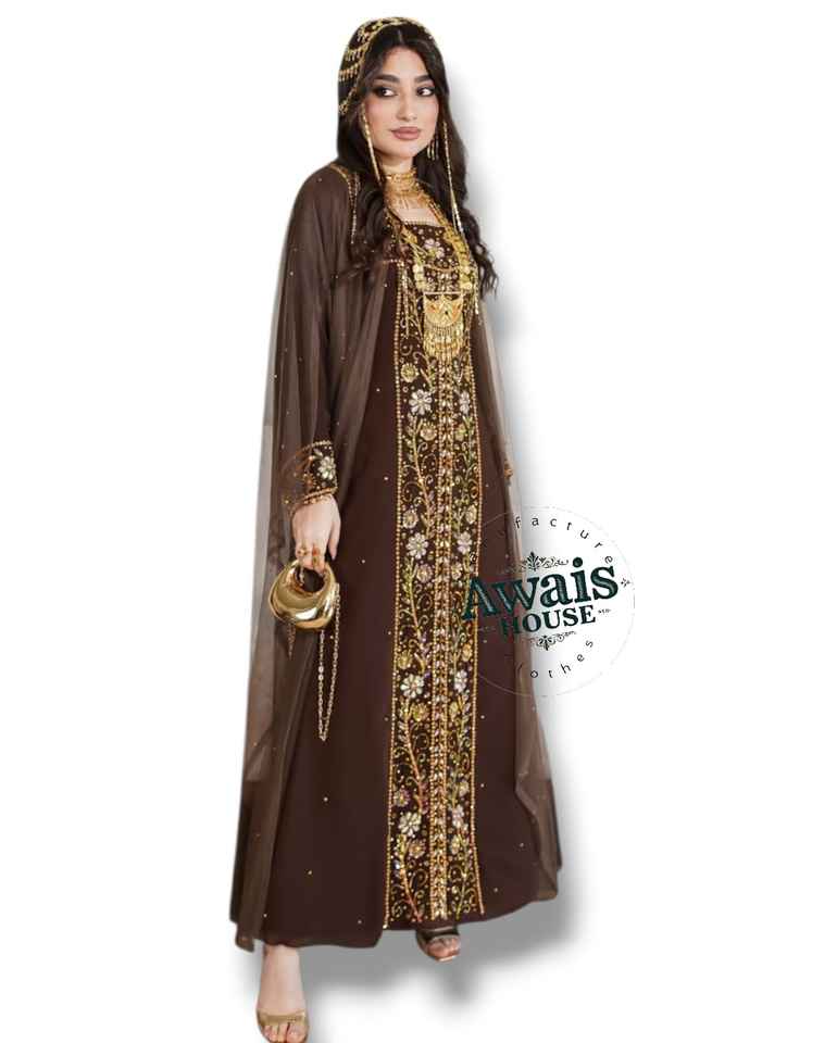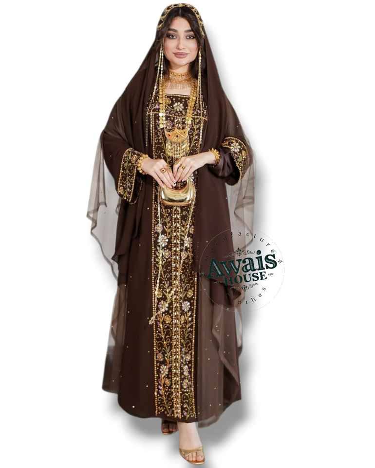 ชุดเดรสยาว 2 ชิ้น แบรนด์ AWAIS HOUSE สำหรับผู้หญิงมุสลิม ดีไซน์เรียบหรู ผ้ากำมะหยี่ประดับลูกปัด ทรงเอไลน์ เหมาะสำหรับงานกลางคืน/งานทางการ ขายส่ง