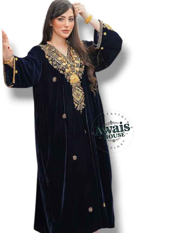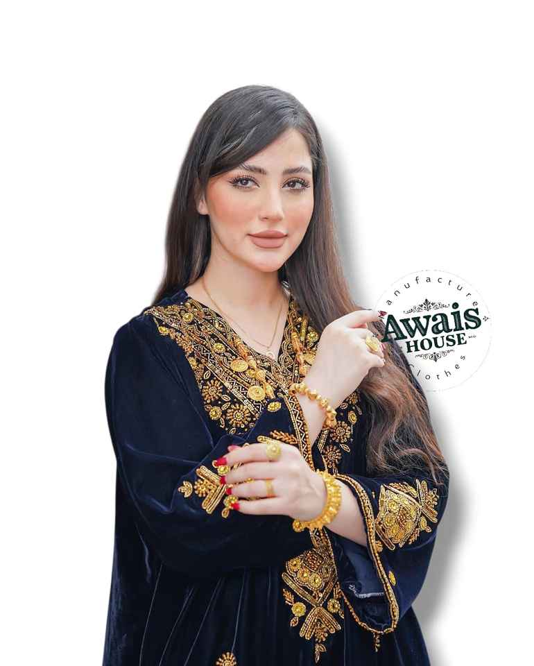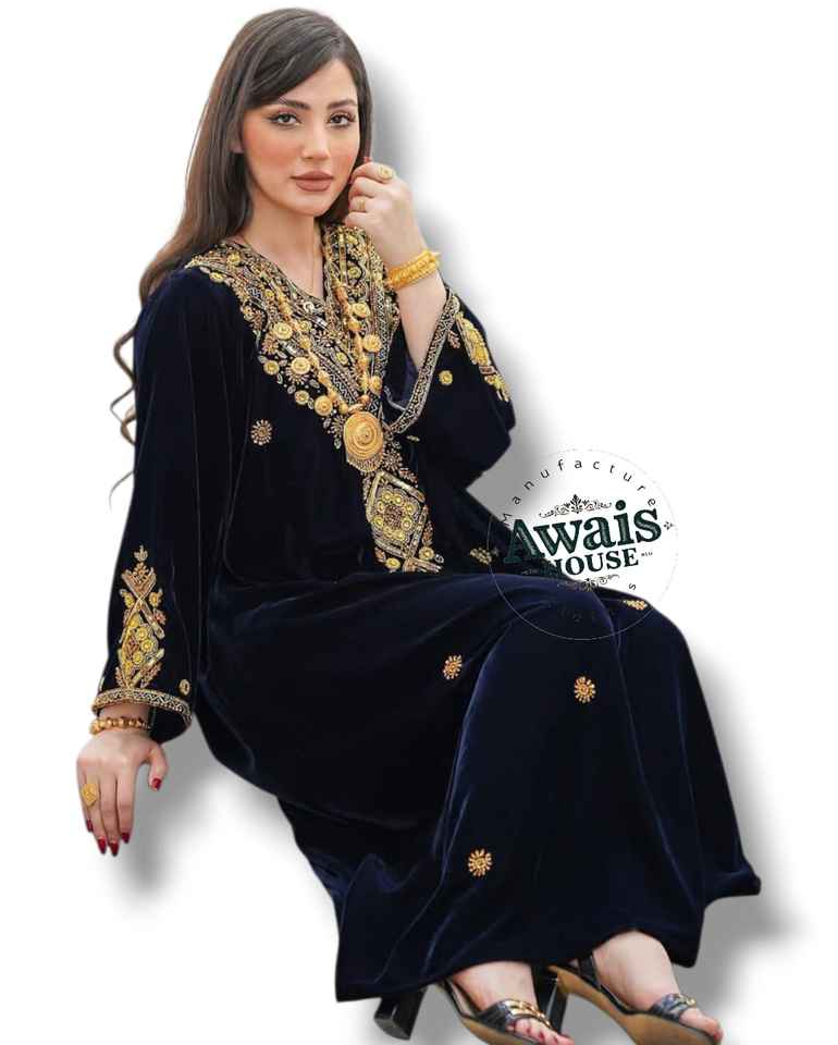 ชุดเดรสยาว 2 ชิ้น แบรนด์ AWAIS HOUSE สำหรับผู้หญิงมุสลิม ดีไซน์เรียบหรู ผ้ากำมะหยี่ประดับลูกปัด ทรงเอไลน์ เหมาะสำหรับงานกลางคืน/งานทางการ ขายส่ง