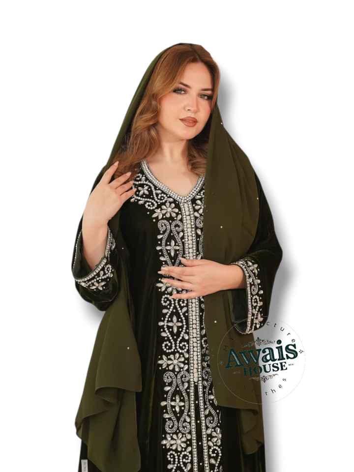Wholesale AWAIS HOUSE Luxury 2-Piece Set Muslim Women Modest Simple Solid Velvet Beaded Robe Floor-Length A-Line Evening/Formal