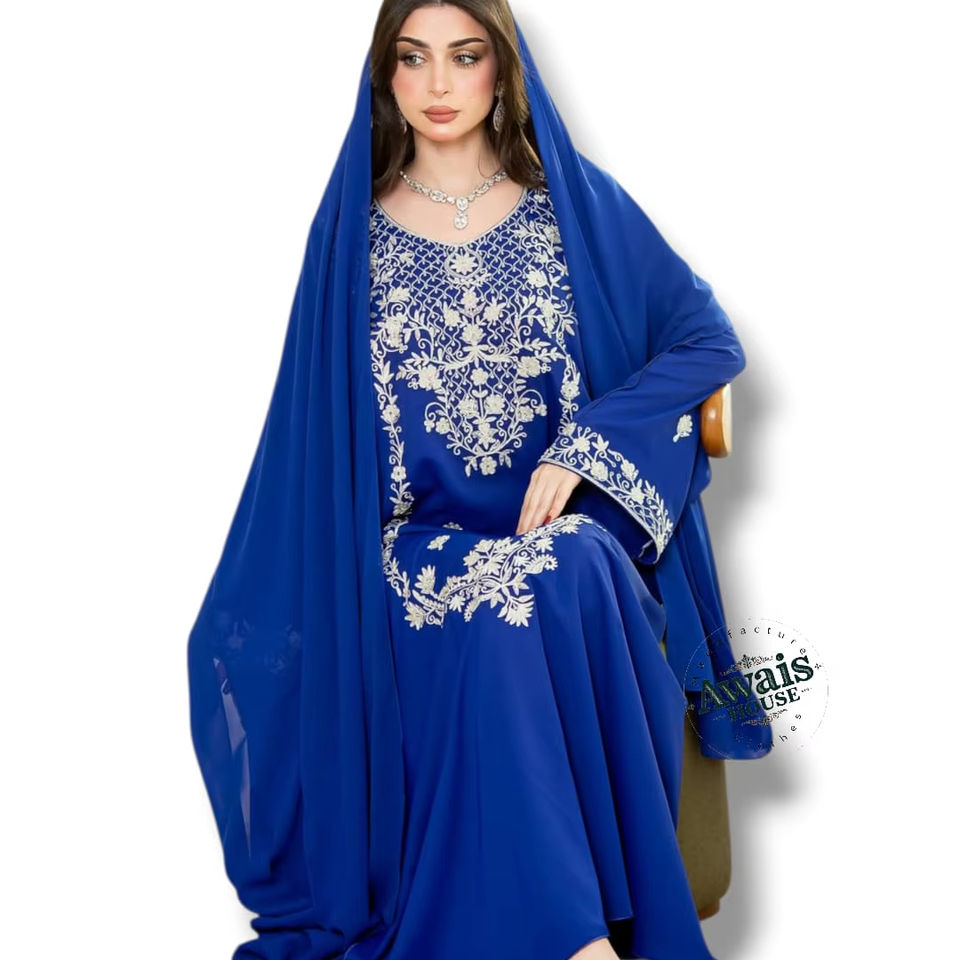 ชุดเดรสยาวทรงเอไลน์ผ้ากำมะหยี่ประดับลูกปัด 2 ชิ้น สำหรับสตรีชาวมุสลิม แบรนด์ AWAIS HOUSE สไตล์เรียบง่าย หรูหรา เป็นมิตรกับสิ่งแวดล้อม ขายส่ง