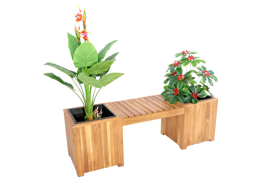 ม้านั่งไม้กระถินณรงค์พร้อมกระถางต้นไม้ ดีไซน์สไตล์ไม้แบบเรียบง่าย สำหรับใช้งานนั่งพักผ่อนในสวนกลางแจ้ง