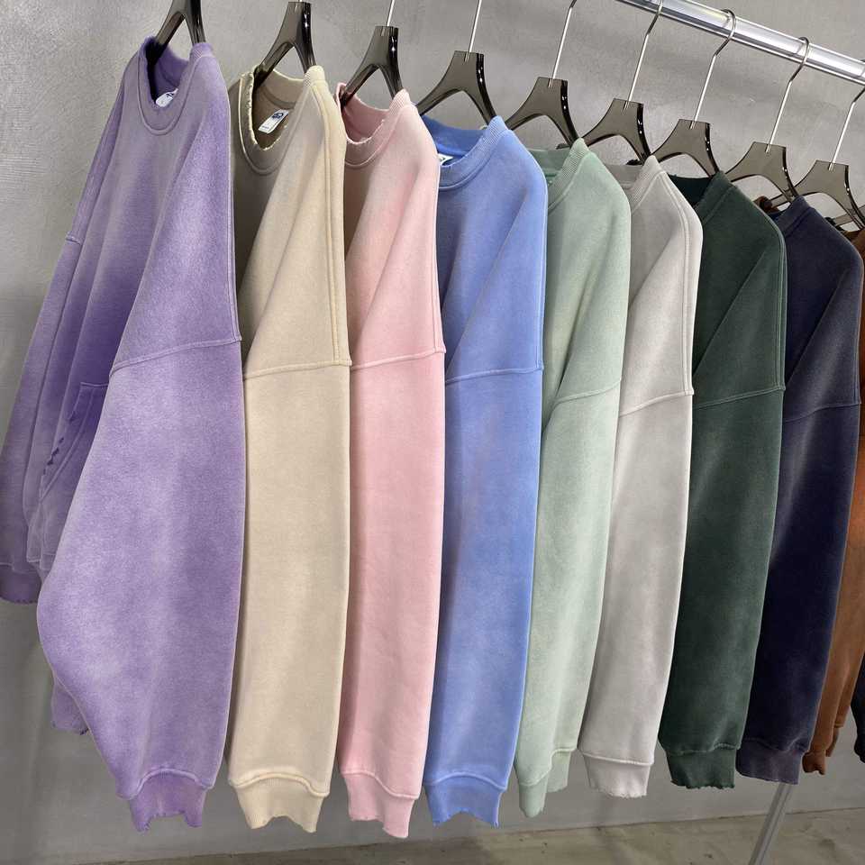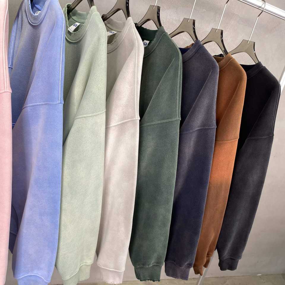 ผู้จำหน่ายเสื้อสเวตเชิ้ตแบบย้อมสีเอซิดขายส่ง เสื้อสเวตเชิ้ตคอกลมสไตล์วินเทจสำหรับขายส่งแฟชั่น