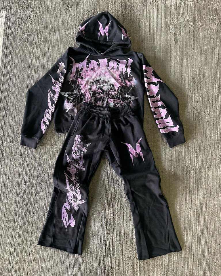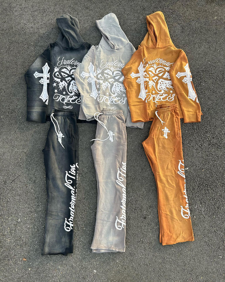 ชุดวอร์มสองชิ้นผ้าบ็อกซี่เฮฟวี่ไซส์ปล่อยชายซักด้วยกรดชุดวอร์มกางเกงเล่นยิม