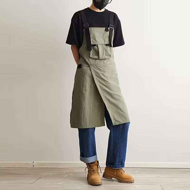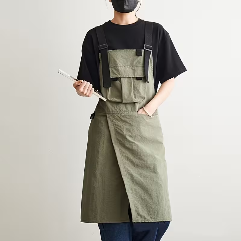 ผ้ากันเปื้อนแบบเปิดเป้า สายไขว้ปรับได้ ขายส่ง เหมาะสำหรับพนักงานร้านกาแฟ นักเรียนศิลปะ และใช้ในบ้าน