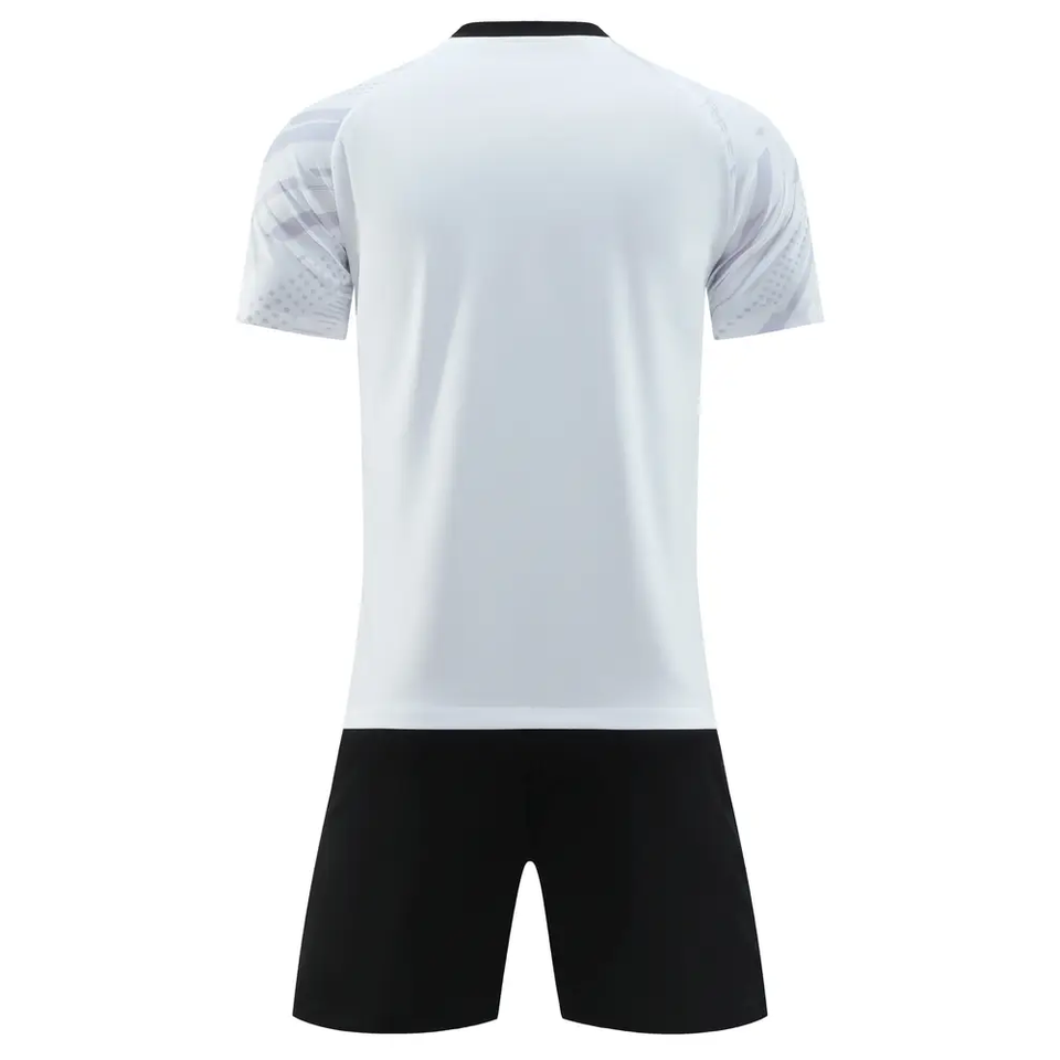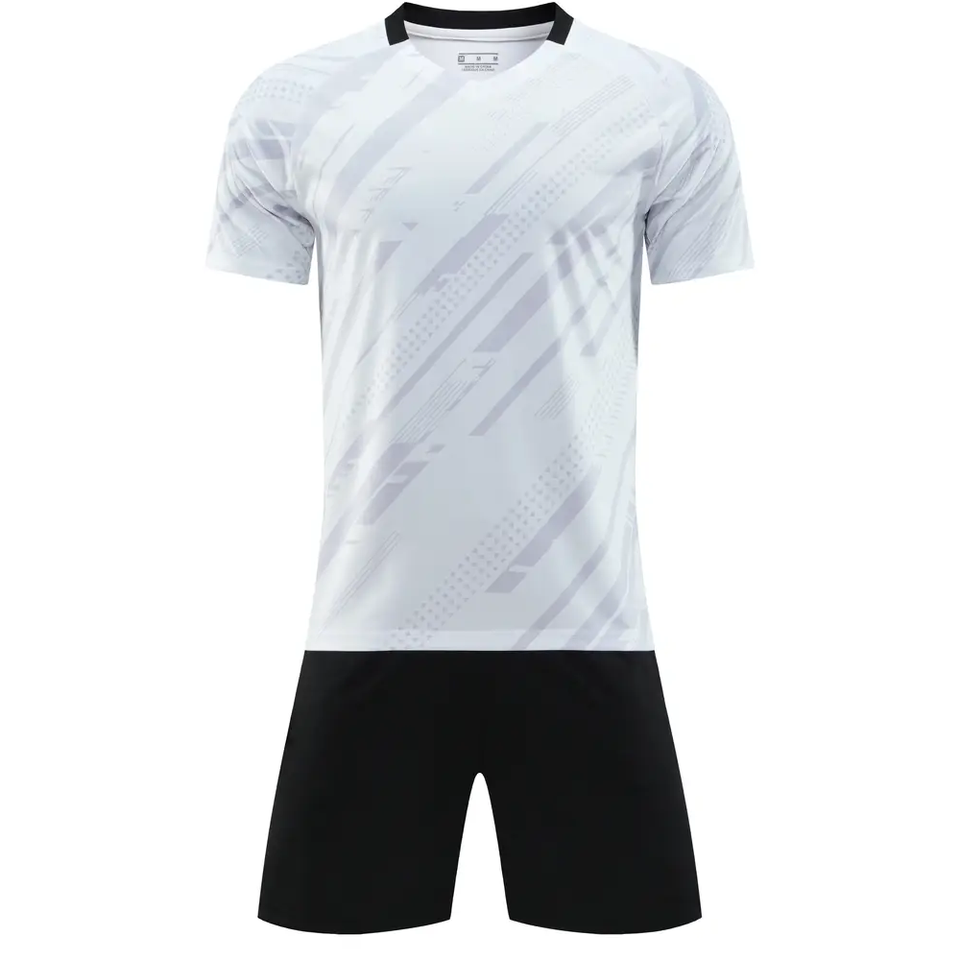 ชุดเสื้อฟุตบอลผ้าโพลีเอสเตอร์สำหรับผู้ใหญ่ชุดทีมเสื้อฟุตบอลแห้งเร็วและกางเกงขาสั้นชุดเล่นฟุตบอลผ้าโพลีเอสเตอร์ออกแบบตามต้องการ