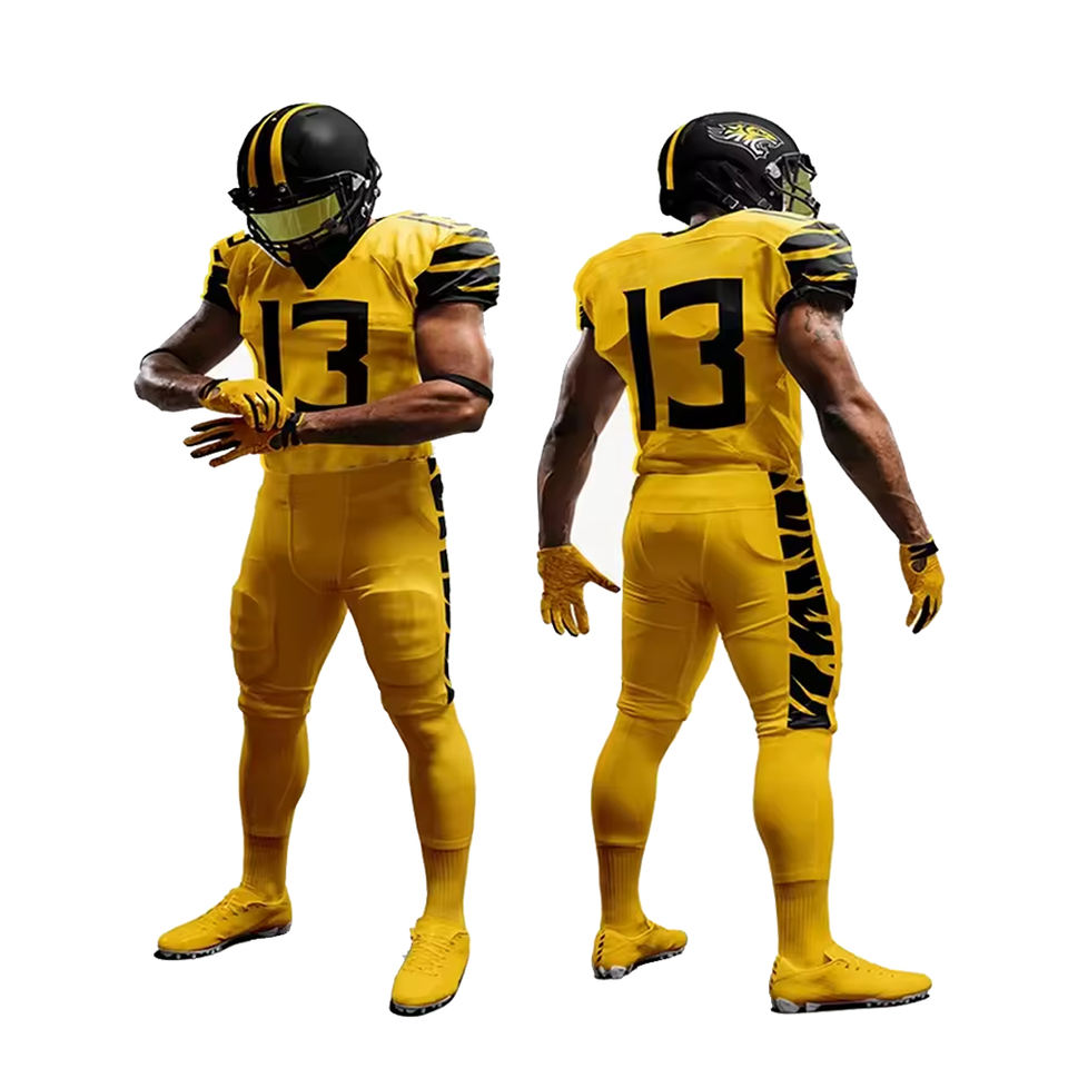 เครื่องแบบอเมริกันฟุตบอลเยาวชนผู้ใหญ่ดีไซน์ซับลิเมชันเต็มตัวสีเหลืองดำ