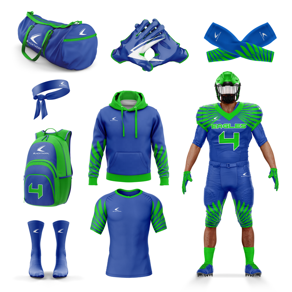 ชุดยูนิฟอร์มอเมริกันฟุตบอลแบบสั่งทำพิเศษสำหรับผู้ใหญ่ น้ำหนัก 320 กรัม ผลิตจากผ้าสแปนเด็กซ์และโพลีเอสเตอร์ ระบายเหงื่อได้เร็ว