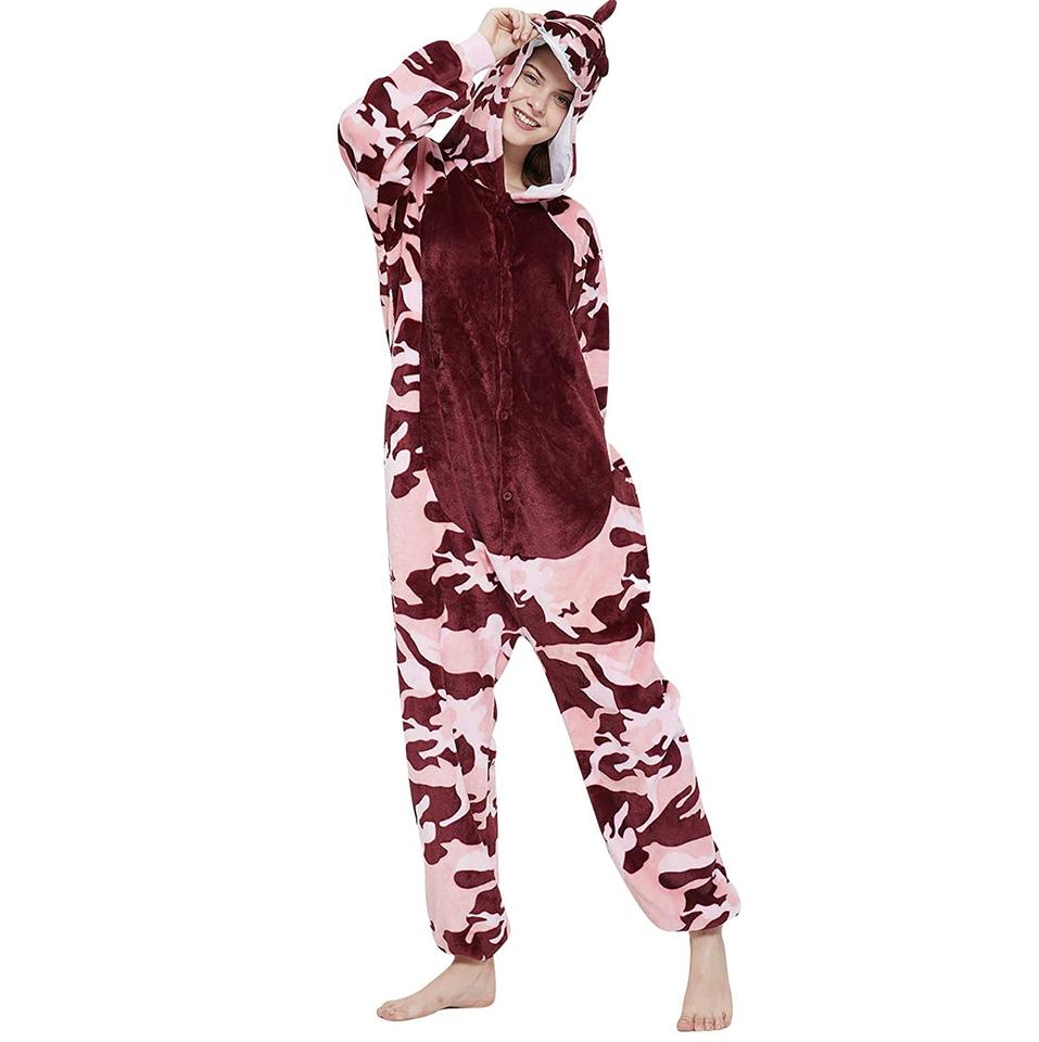 ชุดนอนวันพีซสำหรับผู้ใหญ่ลายสัตว์ ชุดคริสต์มาส ชุดลำลองใส่บ้าน ชุดนอนฤดูหนาว ชุดนอนผู้หญิง ระบายอากาศได้ดี ขายส่ง