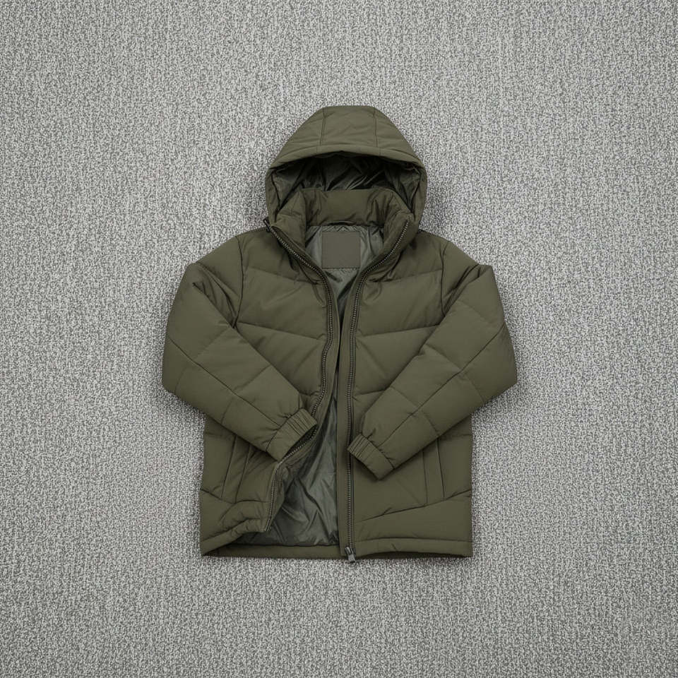 เสื้อแจ็คเก็ตพัฟเฟอร์มีฮู้ด สีเขียวเข้ม ราคาส่ง ถูก น้ำหนักเบา บุด้วยใยฝ้าย เหมาะสำหรับฤดูหนาว