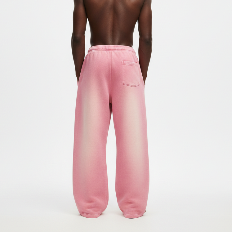 กางเกงวอร์มเอวยางยืดทรงหลวมสไตล์ฮิปฮอปคุณภาพสูงราคาส่งถูก ล้างสีซีดแบบซันเฟด ขากว้างสำหรับผู้ชาย