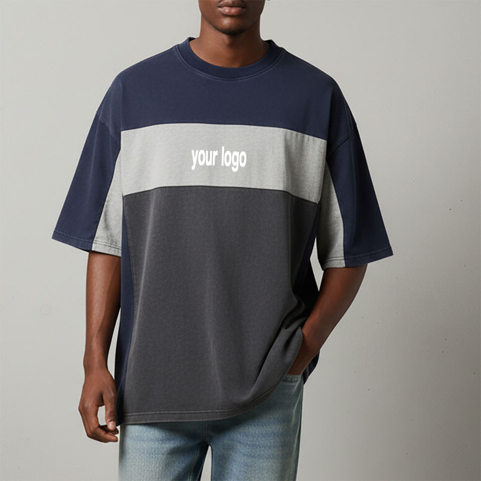 เสื้อยืดคอกลมโอเวอร์ไซส์สีสันตัดกัน ราคาส่งถูก สไตล์สตรีทแวร์ ใส่สบายสำหรับฤดูร้อน สำหรับผู้ชาย