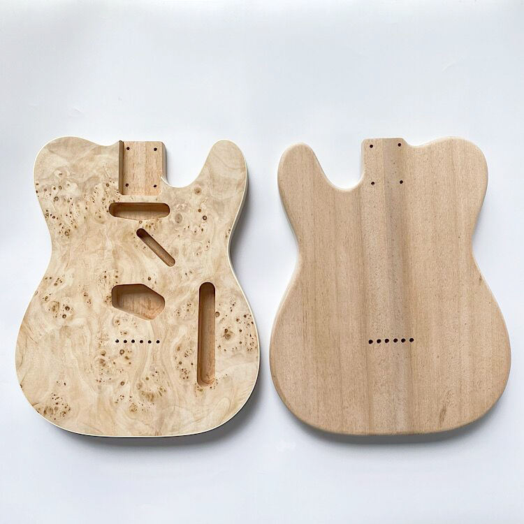 ตัวกีตาร์อะลเดอร์สำหรับประกอบเองแบบขายส่ง รุ่น TL แบบยังไม่เสร็จ พร้อมขอบและแผ่นไม้วีเนียร์ลาย Burl