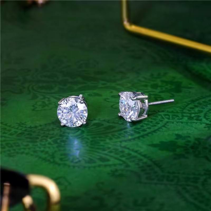 ต่างหูเพชรโมอิสซาไนต์แบบขายส่ง ตัวล็อคแบบเกลียว เงินแท้ 925 พร้อมใบรับรอง GRA ดีไซน์หรูหรา