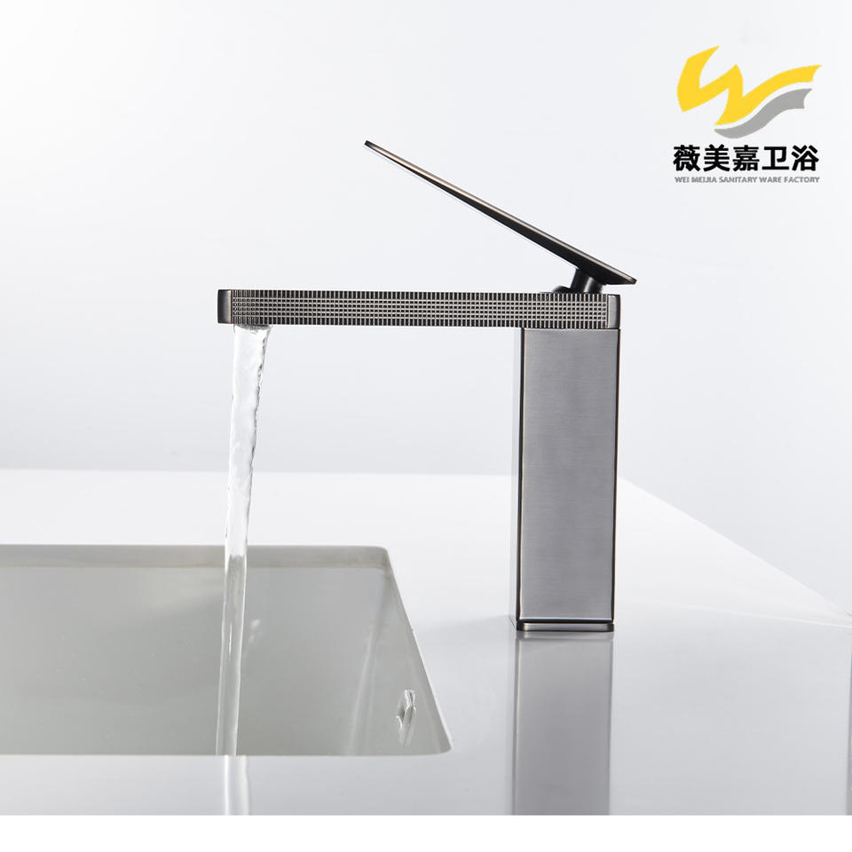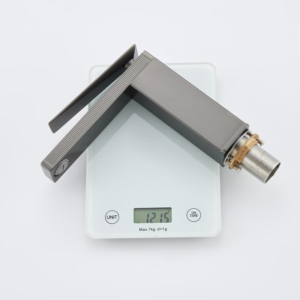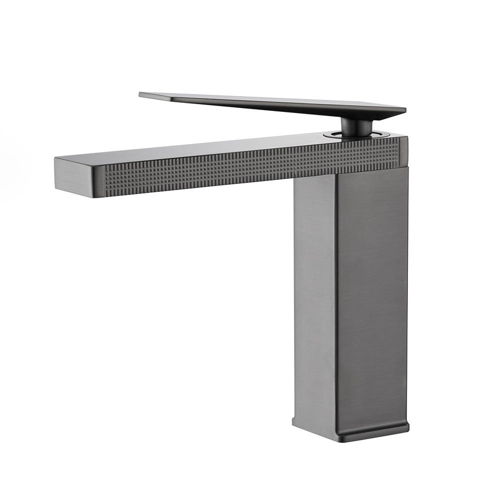 ขายส่งอุปกรณ์ห้องน้ำโครงการก่อสร้างโรงแรม ทำจากทองแดงทั้งหมด สีเทา Gunmetal ก๊อกน้ำอ่างล้างหน้าแบบตั้งพื้น แกนเซรามิกแบบยกสูง น้ำร้อน