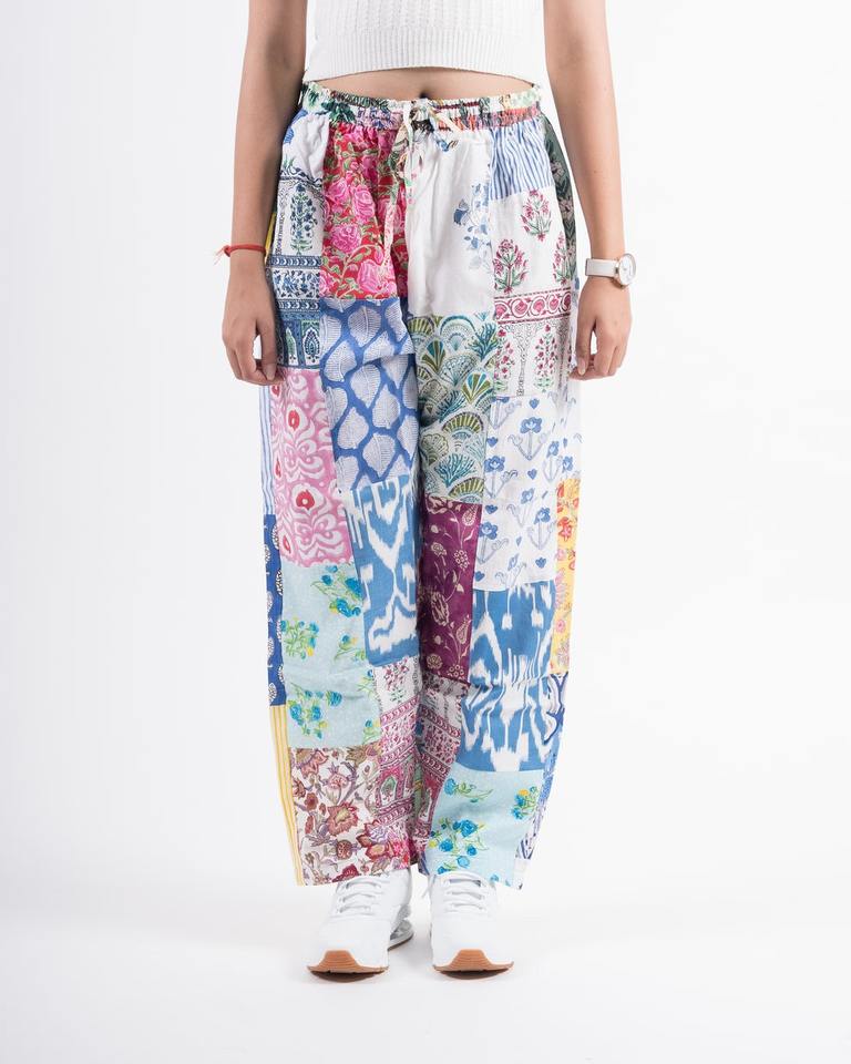 กางเกงฮาเร็มแบบเย็บปะติดสำหรับผู้หญิงและผู้ชายเสื้อผ้าเทศกาลเอวยางยืดสำหรับฤดูร้อน