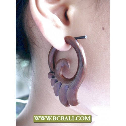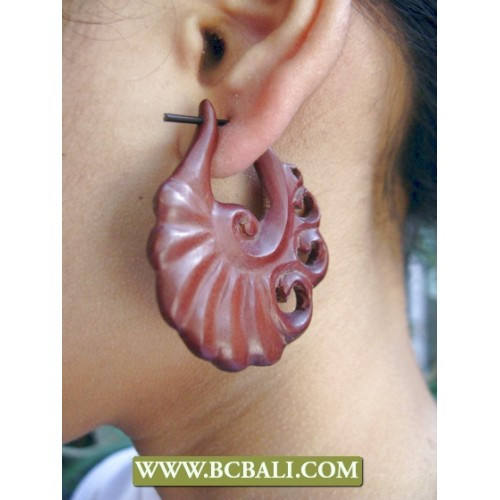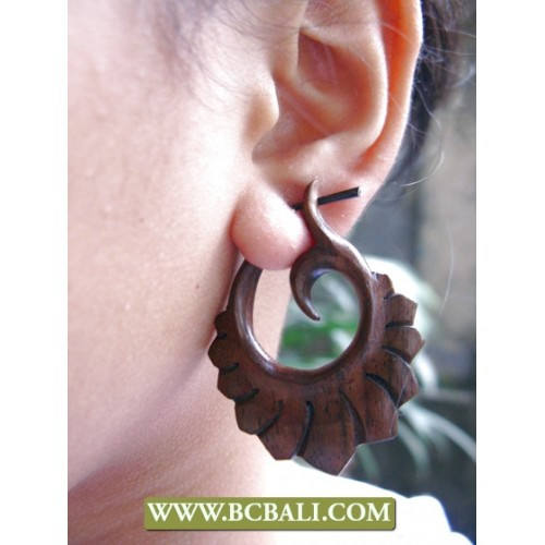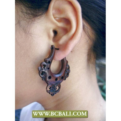 Wholesale Alot Free Shipping Wooden Earrings Piercings Tribal Ethnic Design Hand Carving Hooked From Bali Indonesia